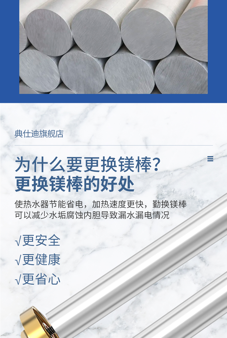 海斯迪克 电热水器专用镁棒 350mm/铜帽螺母 1个
