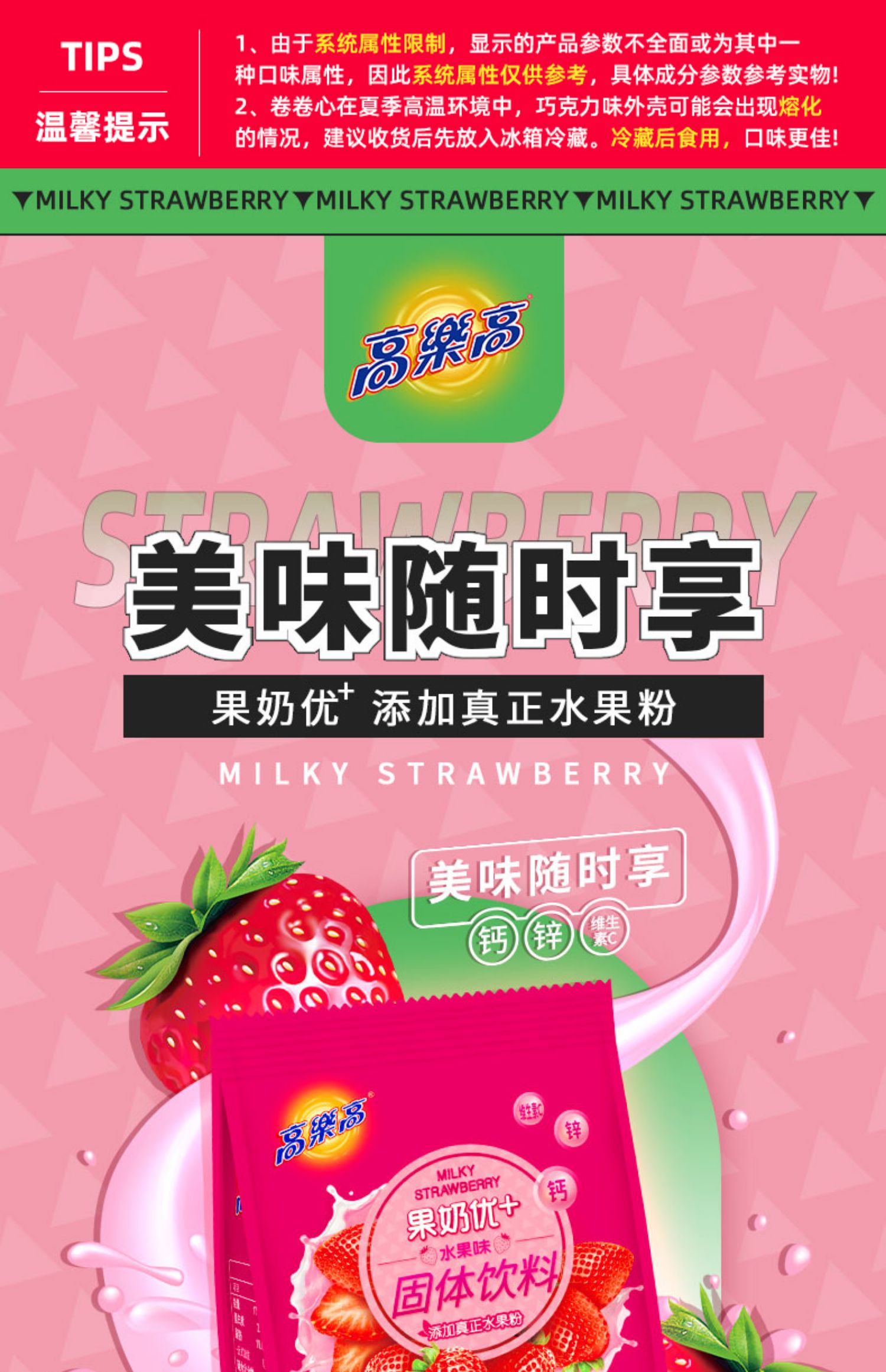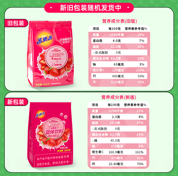 高乐高 果奶优+果珍果汁粉 草莓味 200g 1袋