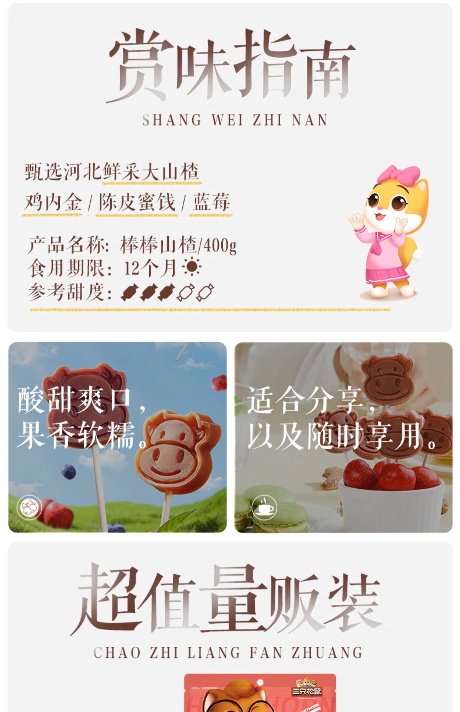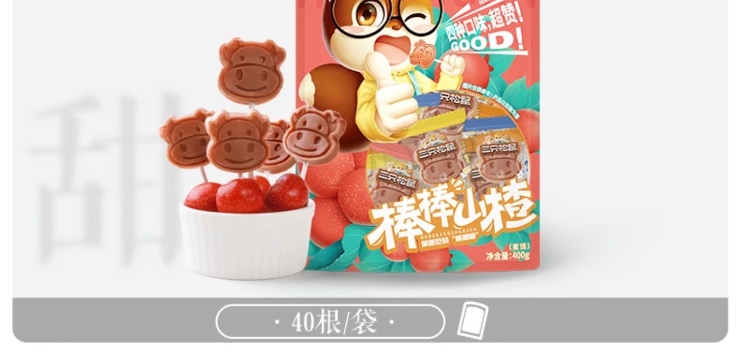 三只松鼠 山楂棒棒糖 4种口味 400g 40支 1包