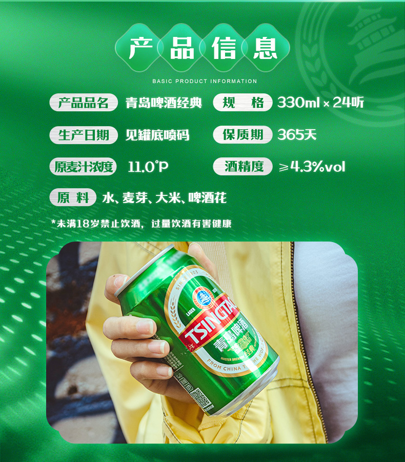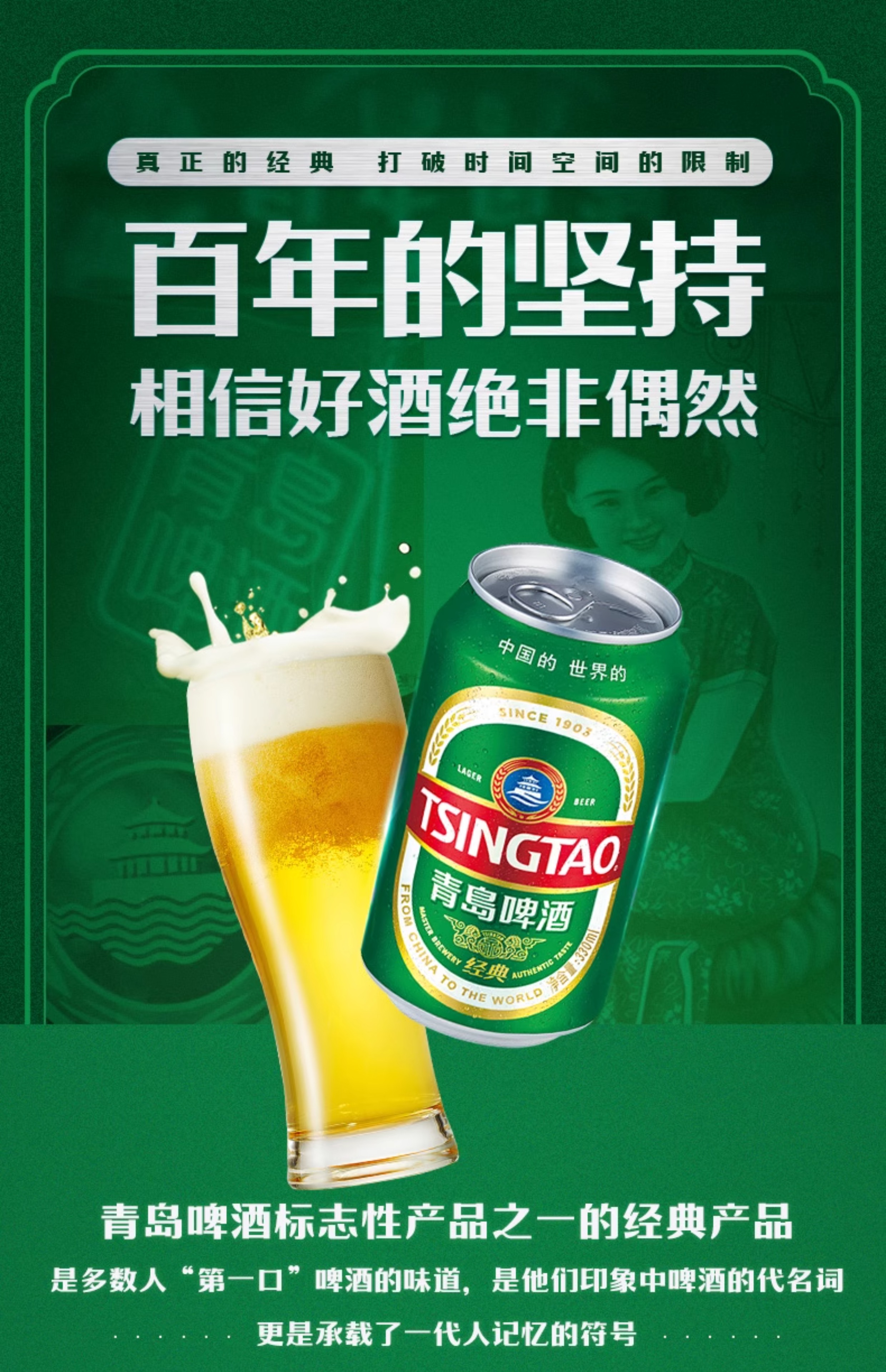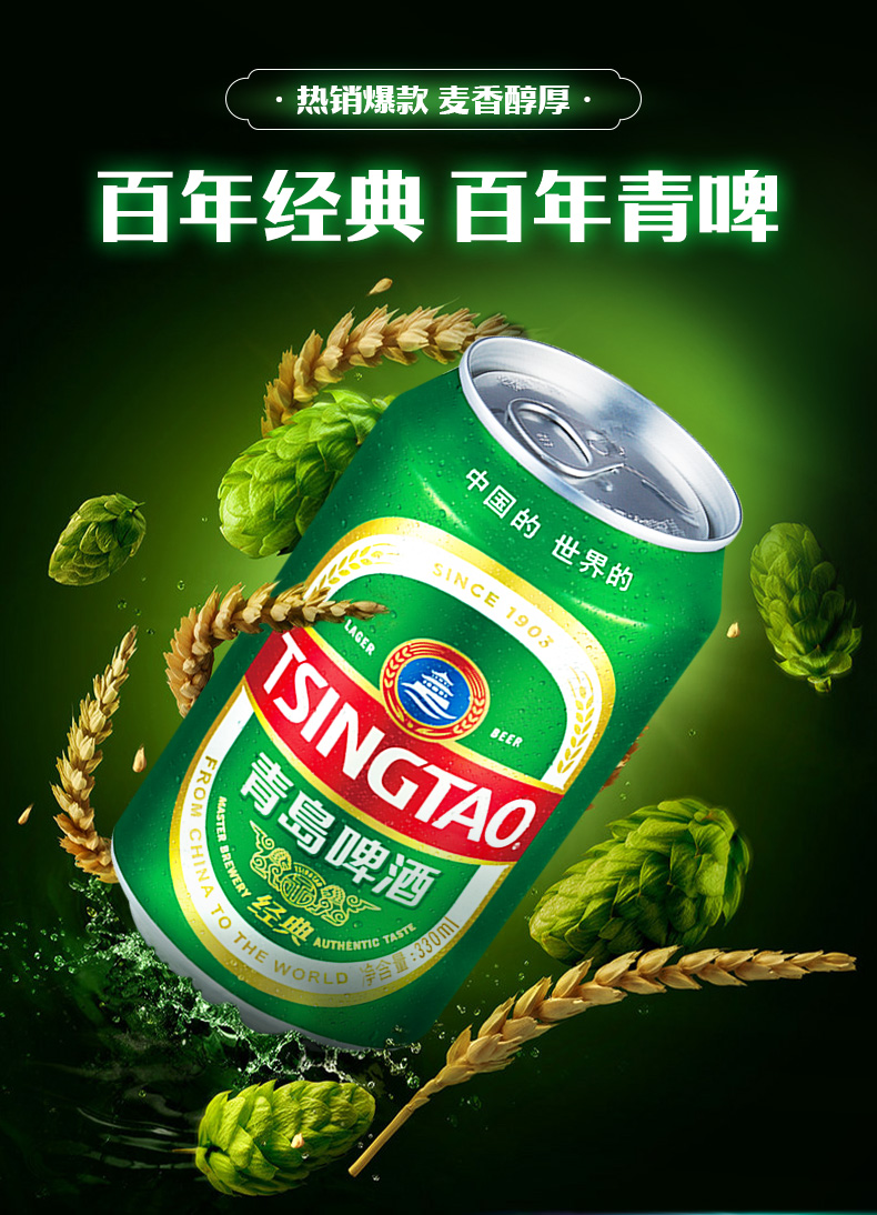 青岛啤酒 经典 熟啤酒 330ml 1个