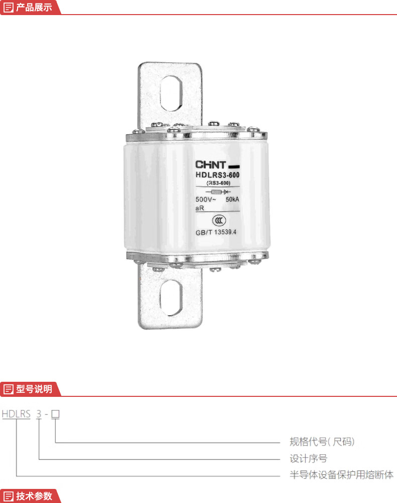 正泰 快速熔断器 HDLRS3-600 AC250/500V 半导体 600A 1个