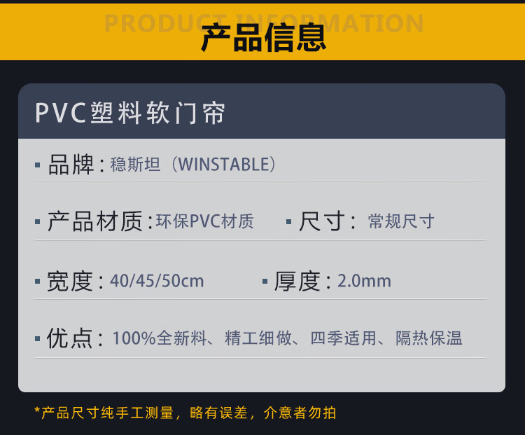 稳斯坦 PVC塑料软门帘 WY0173 灰色 2mm有配重 0.45m宽×2.0m高 1片