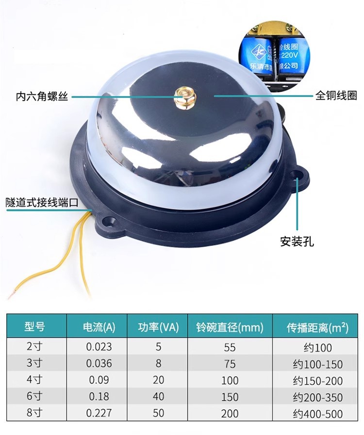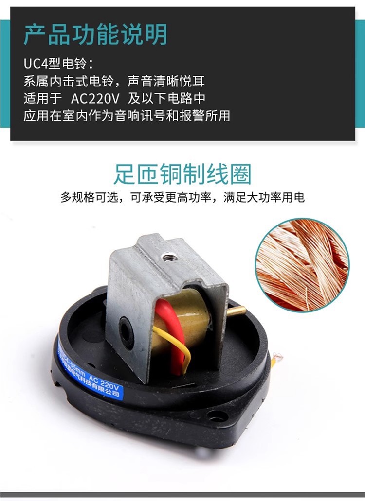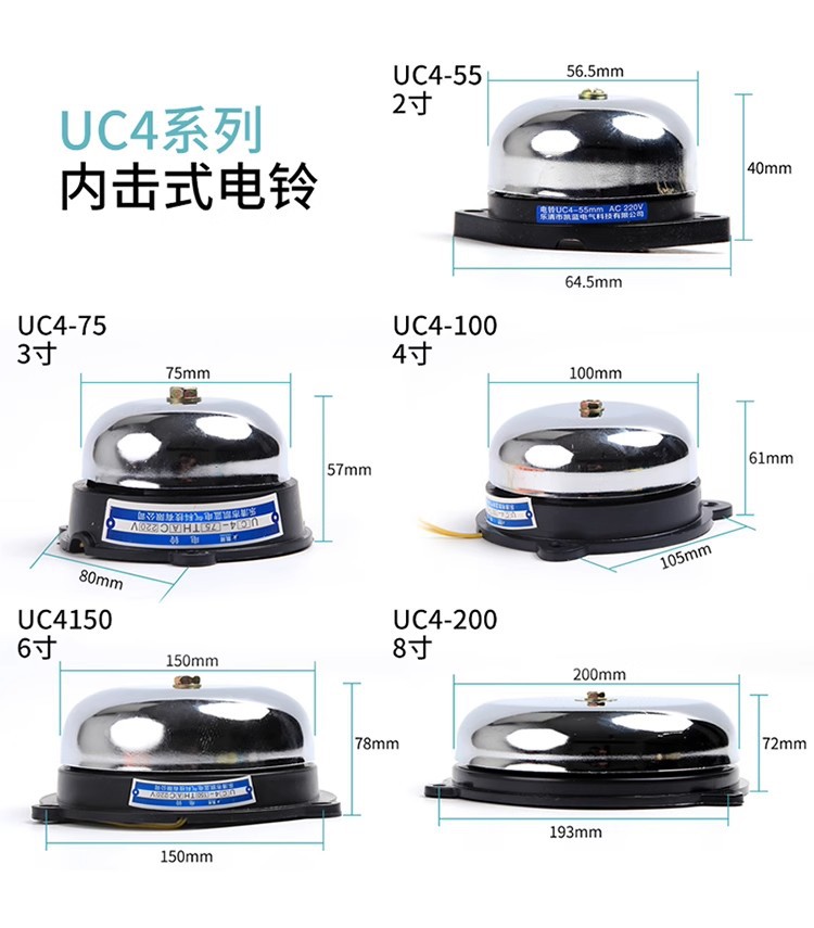 海斯迪克 不锈钢内击式电铃 UC4电铃-6寸 36V 1个