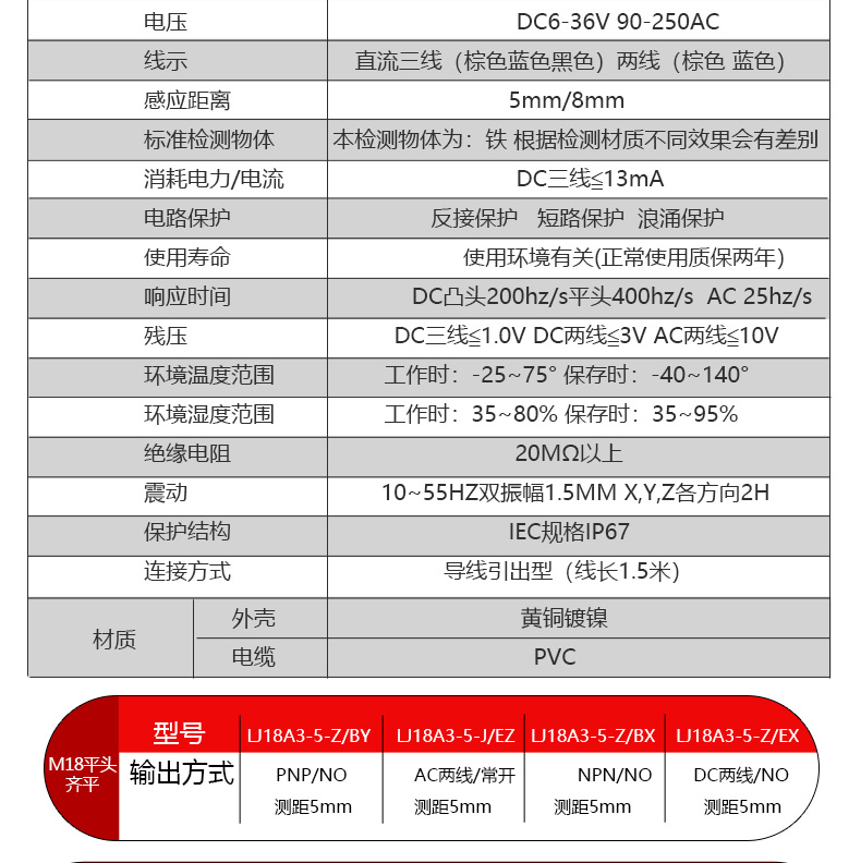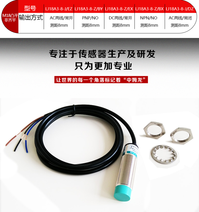 中姆龙 接近开关 PNP三线平头LJ18A3-5-Z/BY 1个