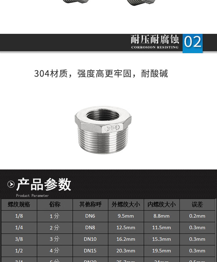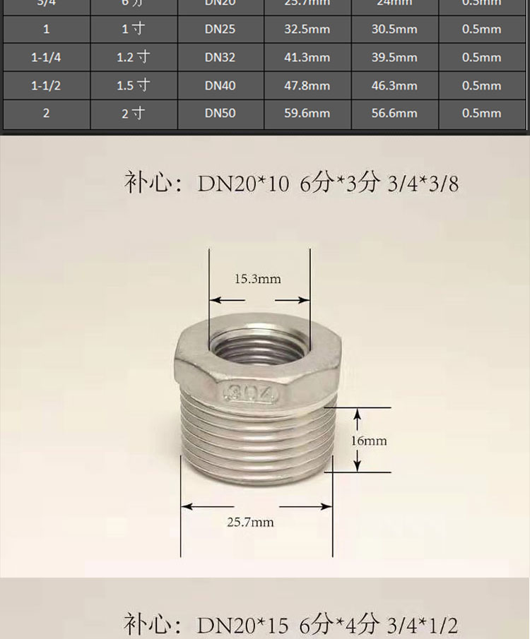 冰禹 304不锈钢补芯 BJjj-140 1 1/2*1 1/4 1个