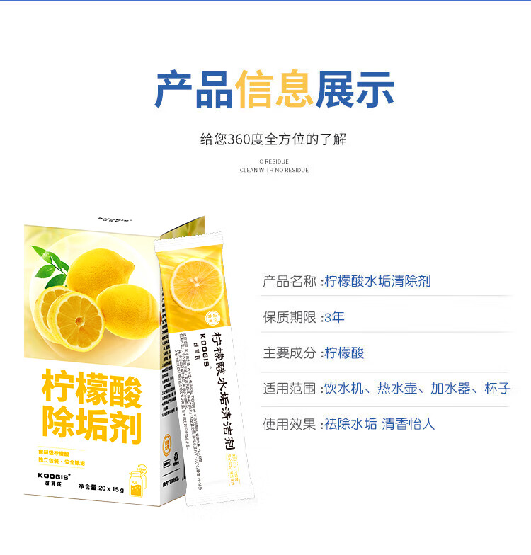 可其氏 柠檬酸除水垢清洁剂 15g*20袋 1盒