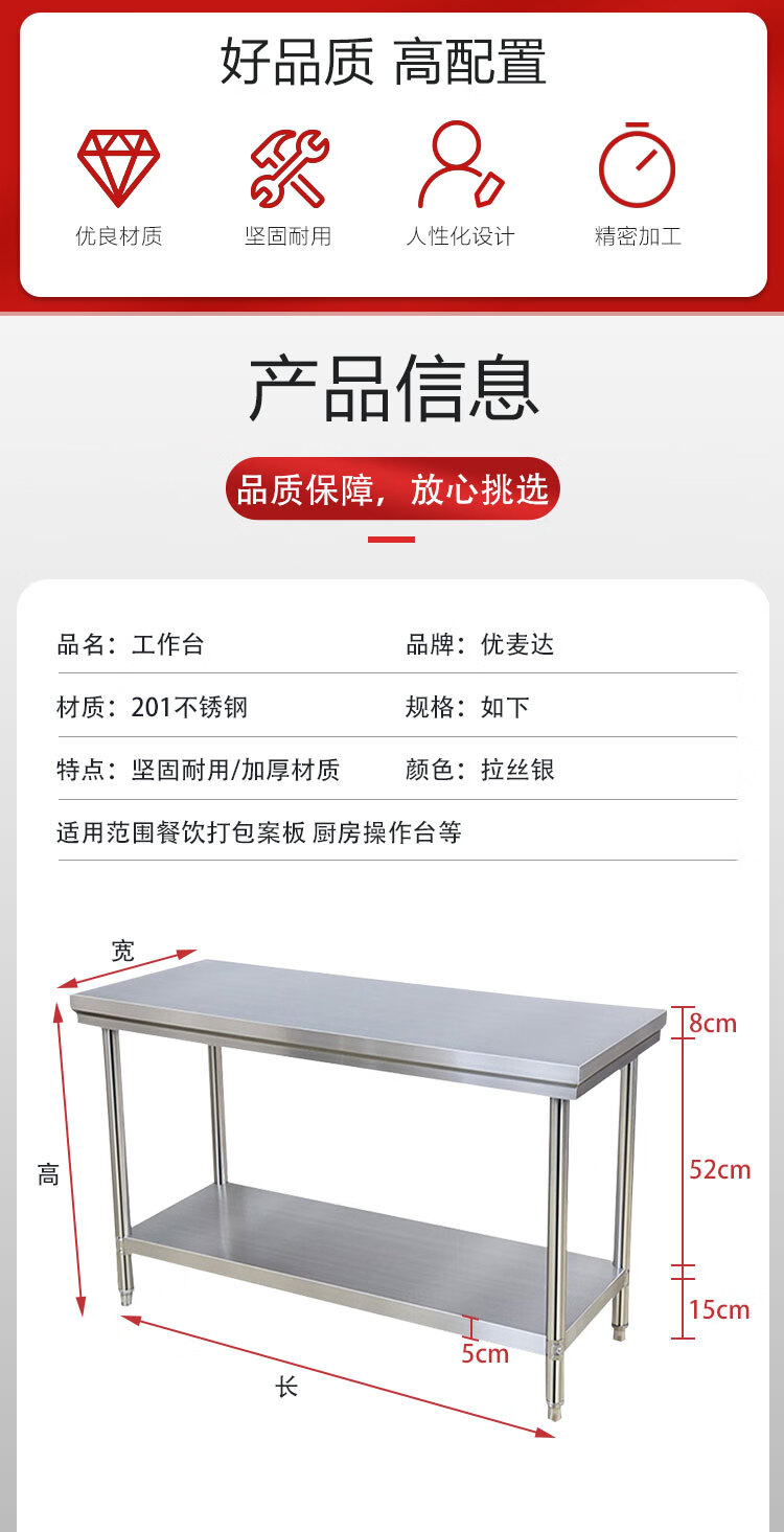 优麦达 不锈钢工作台 YJN778 150*50*80cm双层 1个
