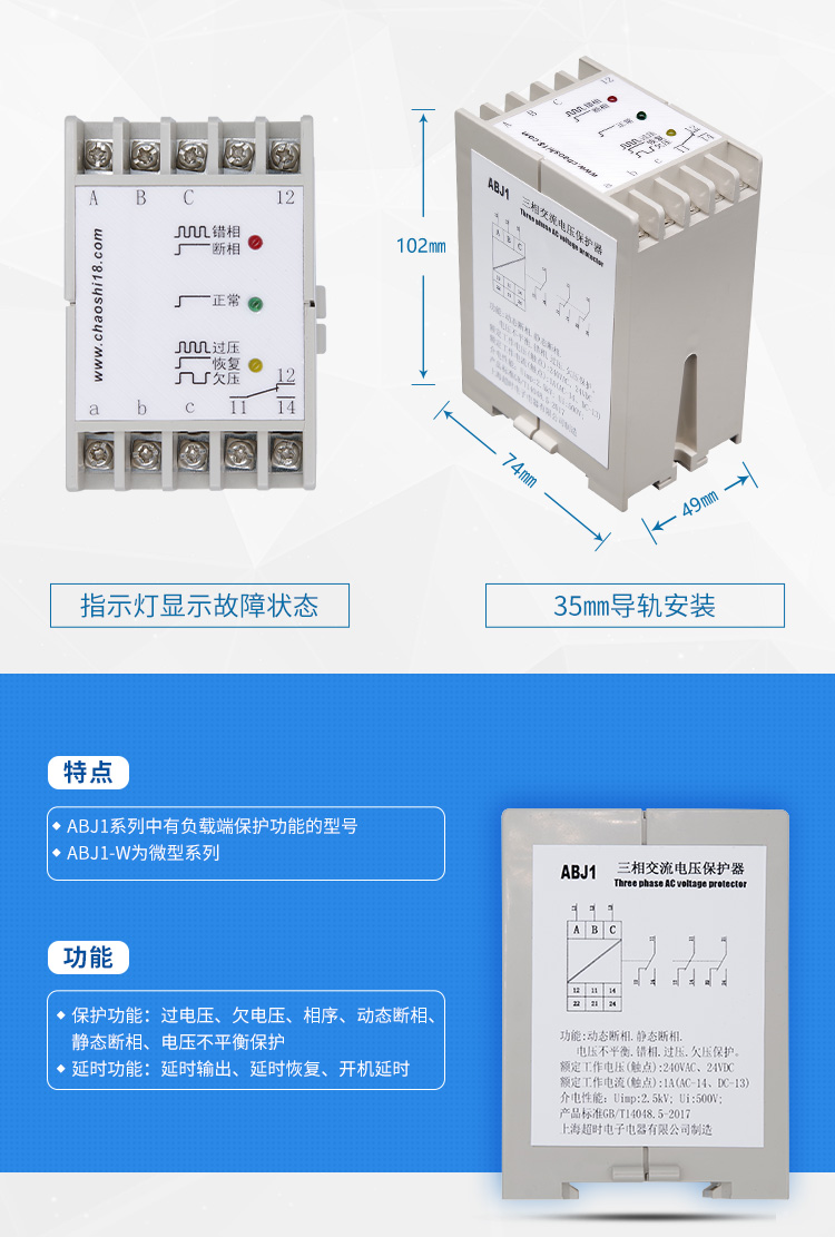 上海超时 三相三线 相序保护器 ABJ1-18AH 1个