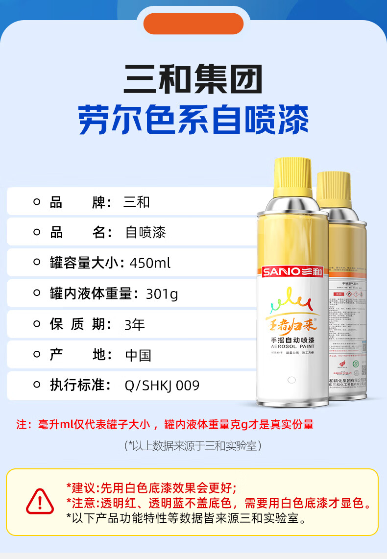 三和 自喷漆 RAL1023 交通黄 450ml 1瓶