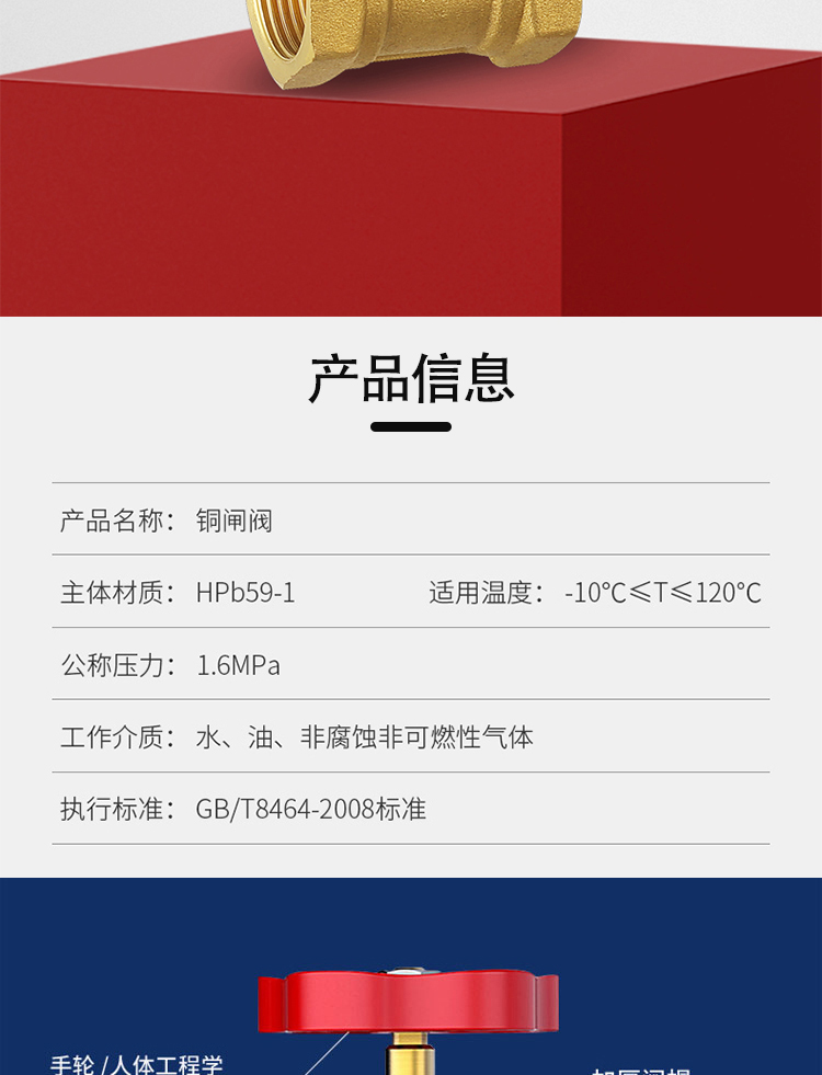 海斯迪克 黄铜工程闸阀 KL1-1 中型 DN15 4分 1个