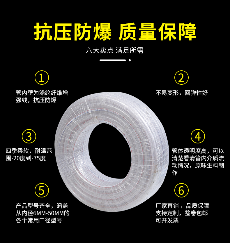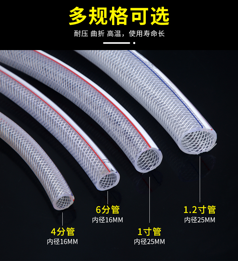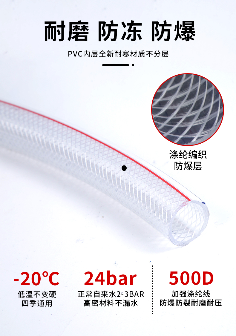 海斯迪克 透明纤维增强软管 内径20mm壁厚2.5mm 20米 1卷