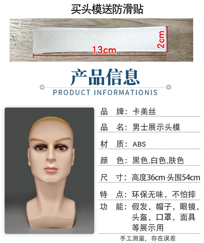 卡美丝 精品男士模特头模展示 亮白 1个