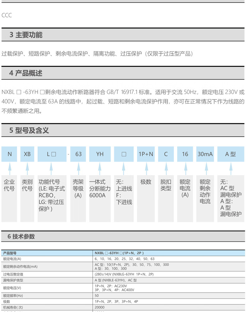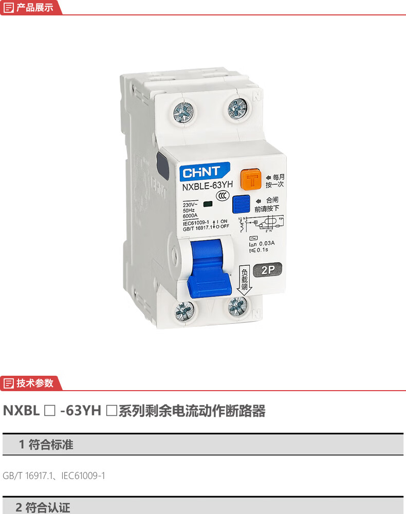 正泰 剩余电流动作断路器 NXBLE-63YH 2P C 20A 1个