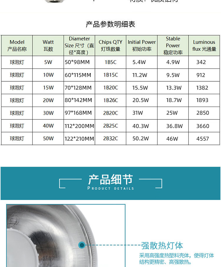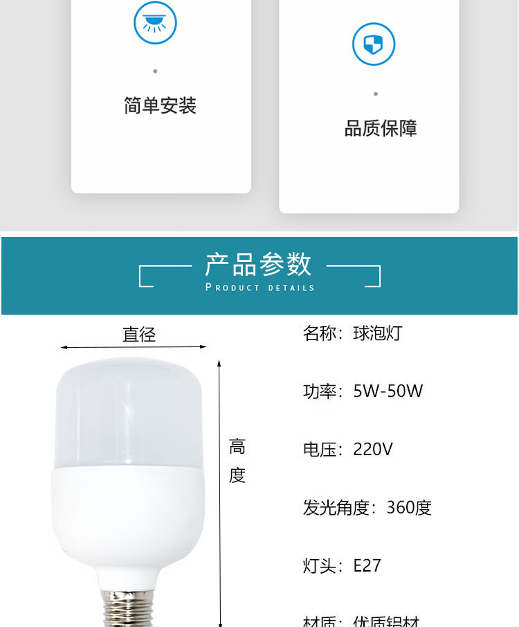 冰禹 led大功率灯泡 KN1-6 E27 40W 白光 1个