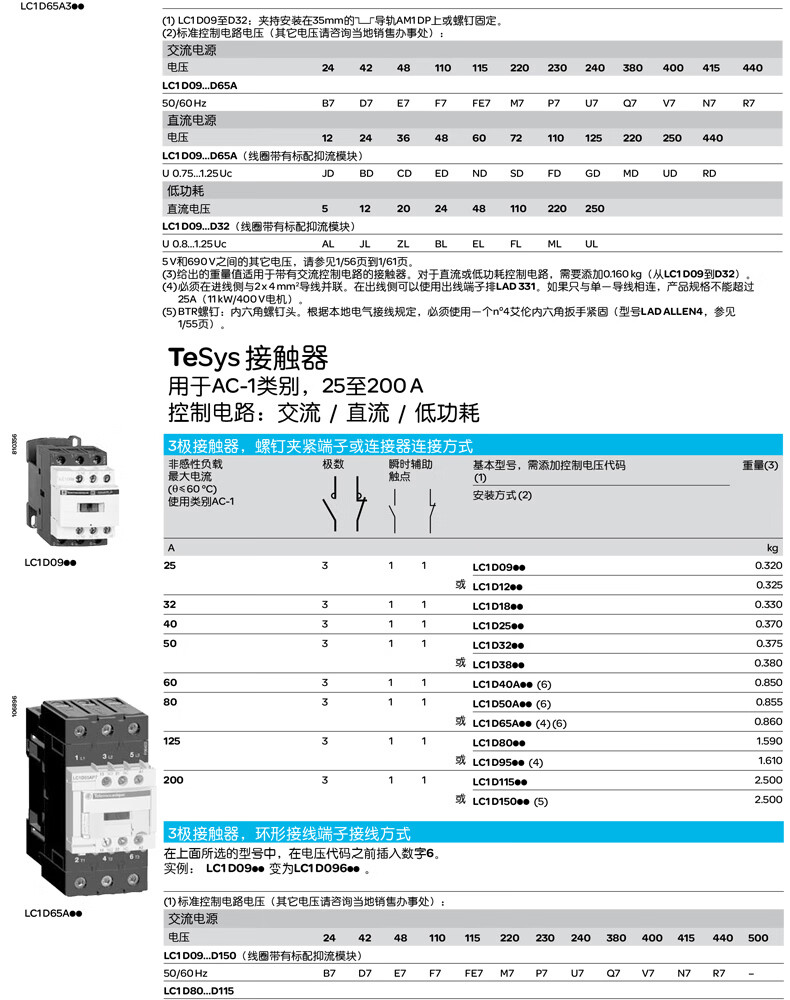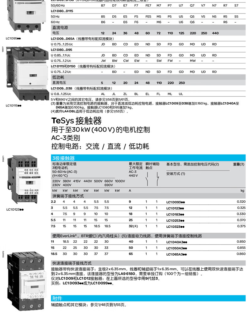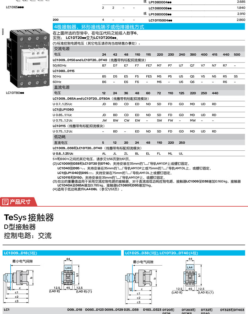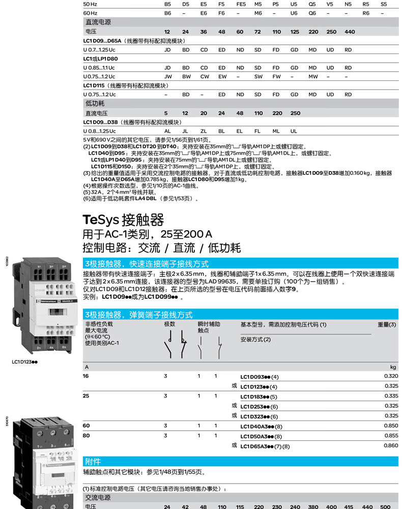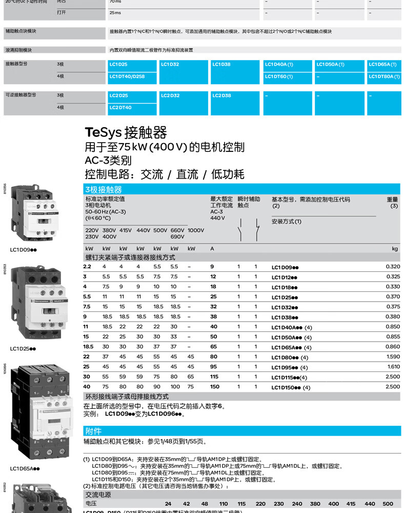 施耐德电气 D系列三极交流接触器 LC1D183BL 18A 3P 1NO+1NC 1个
