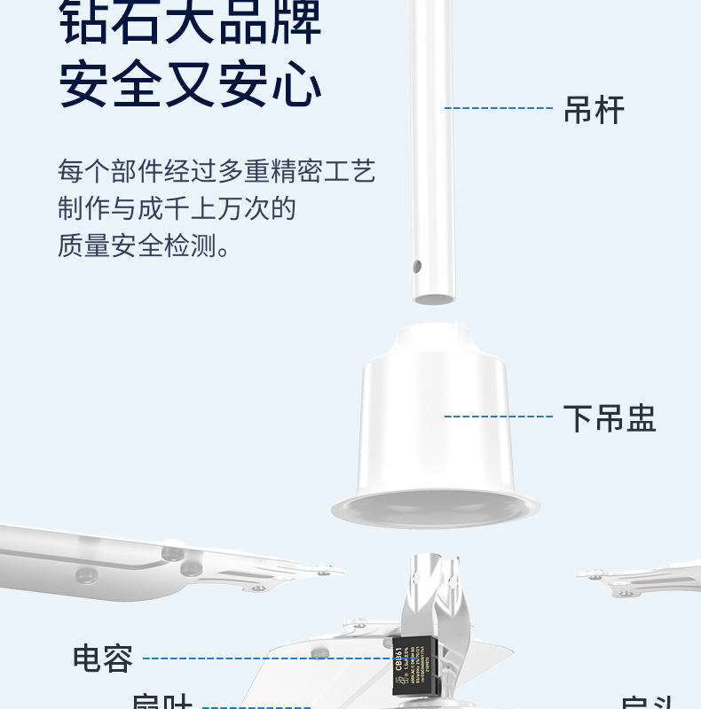 钻石牌 吊扇 DS56 75W 一体扇叶 白色 1个