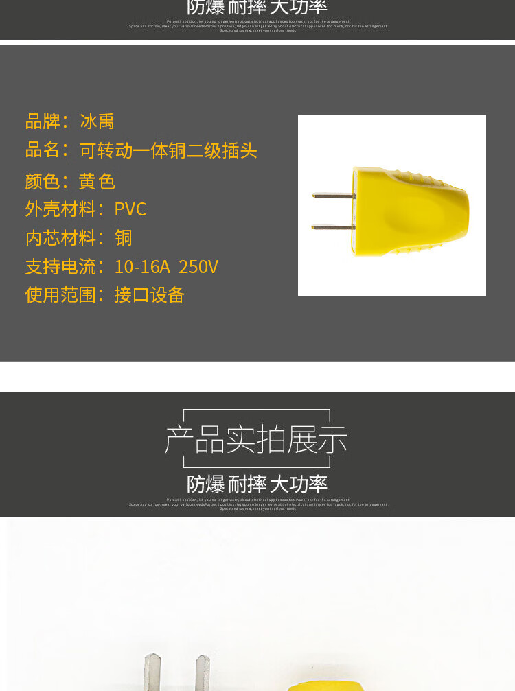 冰禹 两极电源插头 KN4-1 可转动阻燃 6个 1件