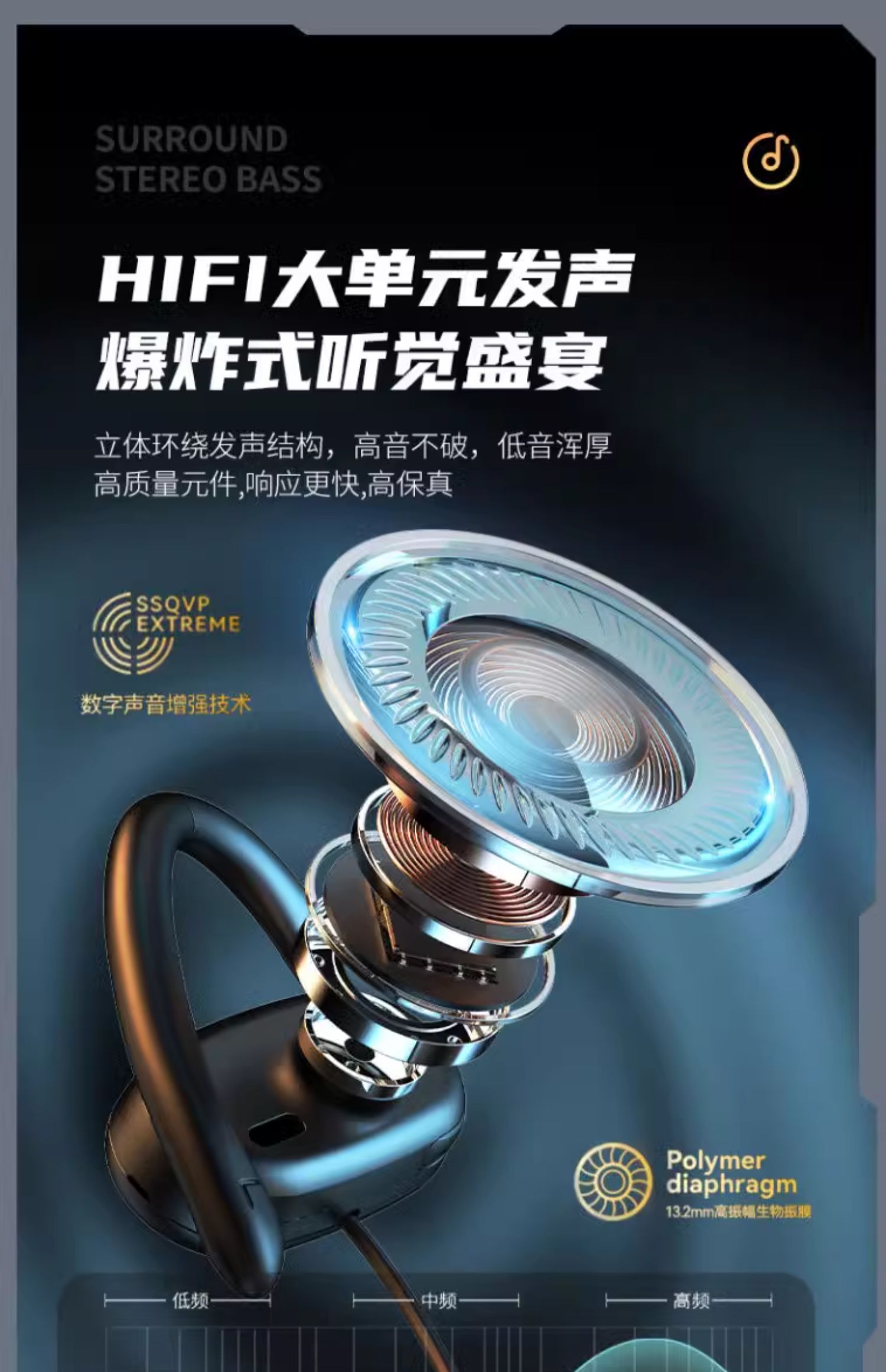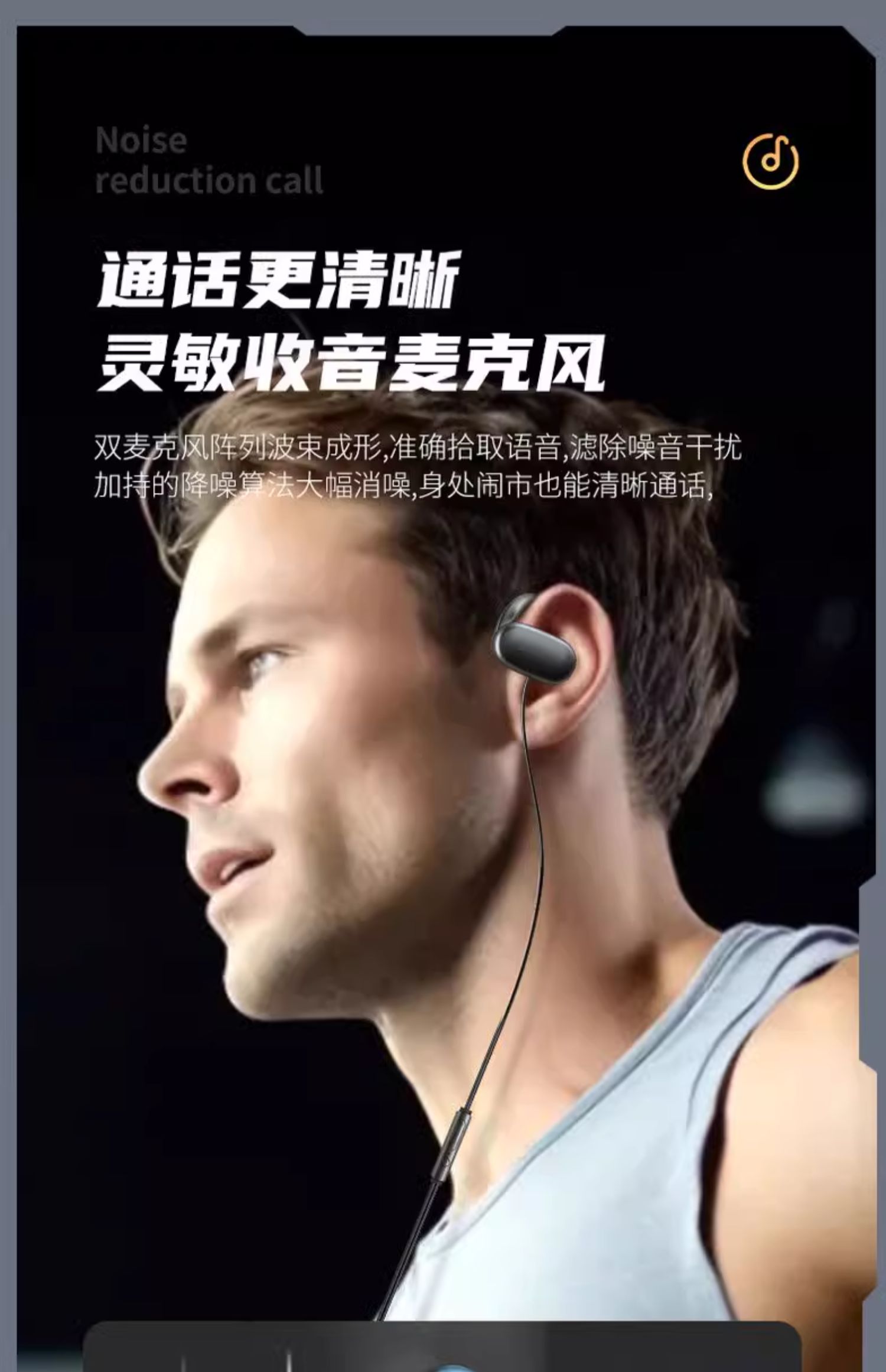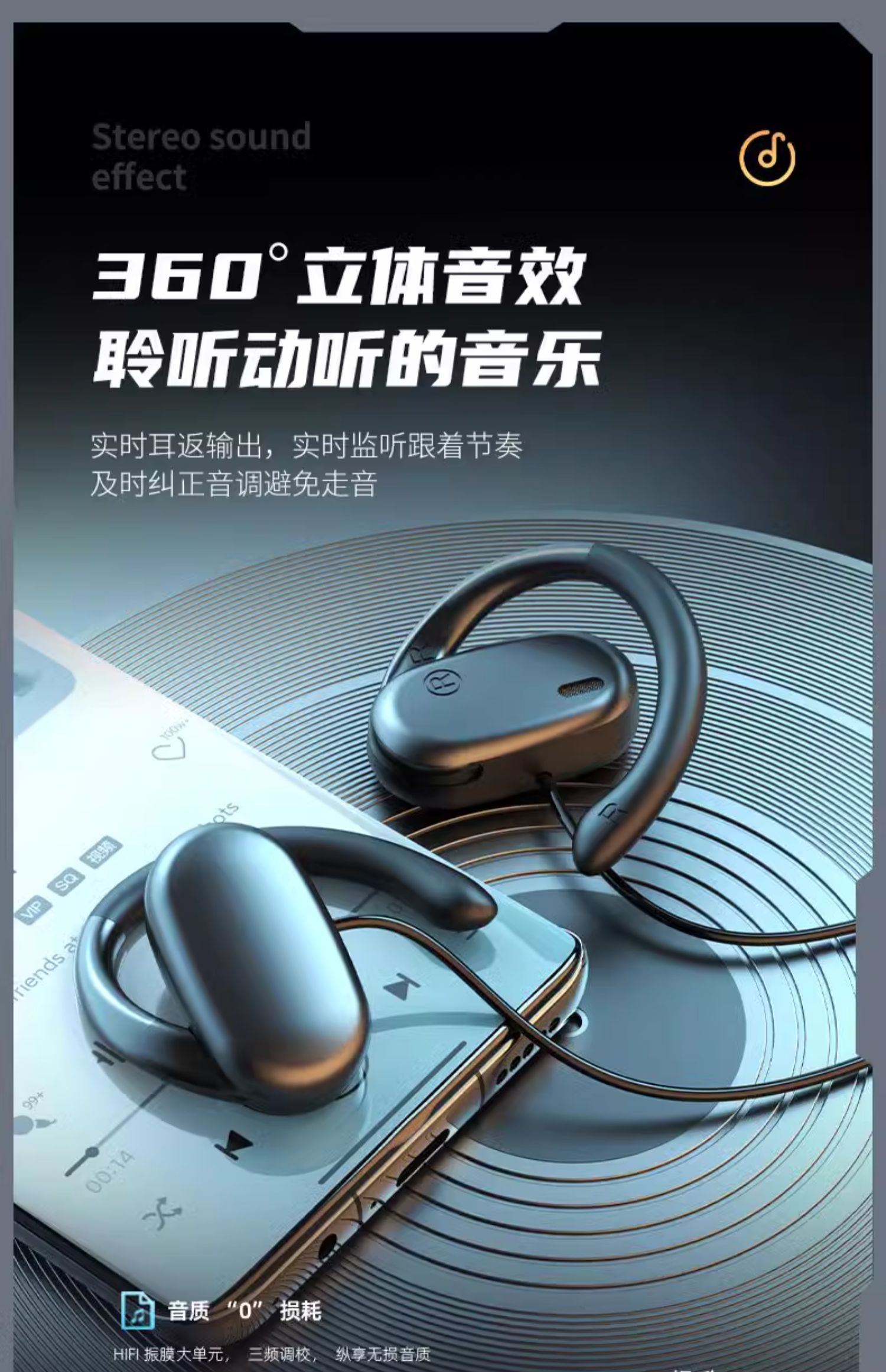 HANG 挂耳式线控带麦耳机 9998 黑色 3.5mm单接口/1.2m 1个