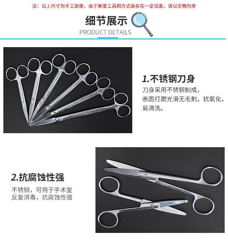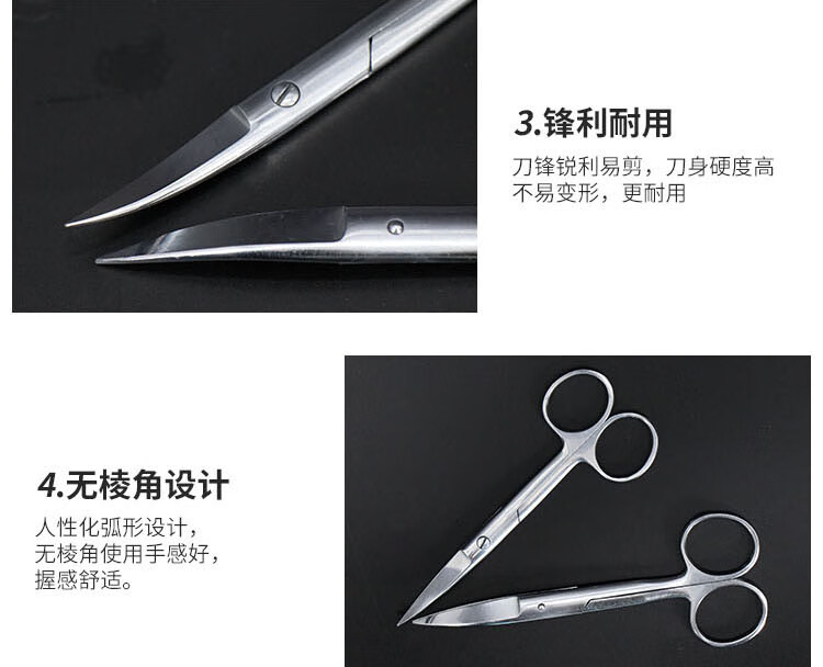 海斯迪克 不锈钢手术剪刀 KY8-11 弯尖 160mm 1把