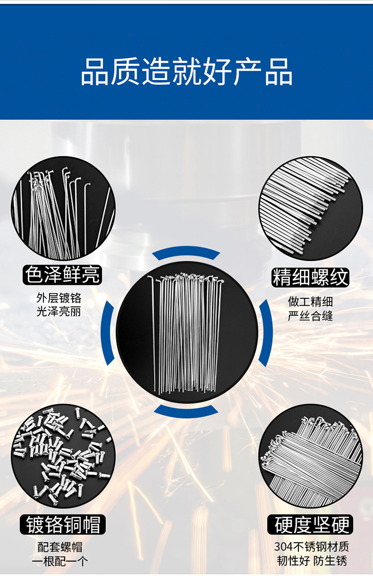 国产通用 自行车辐条 13号 粗2.2长240毫米 304不锈钢 100支 1件