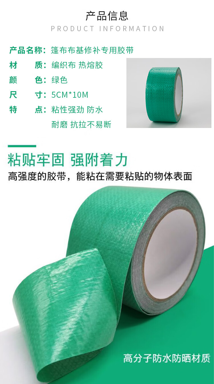 海斯迪克 篷布修补胶带 KA4-3 编织布 绿色 5cm*10m 1卷