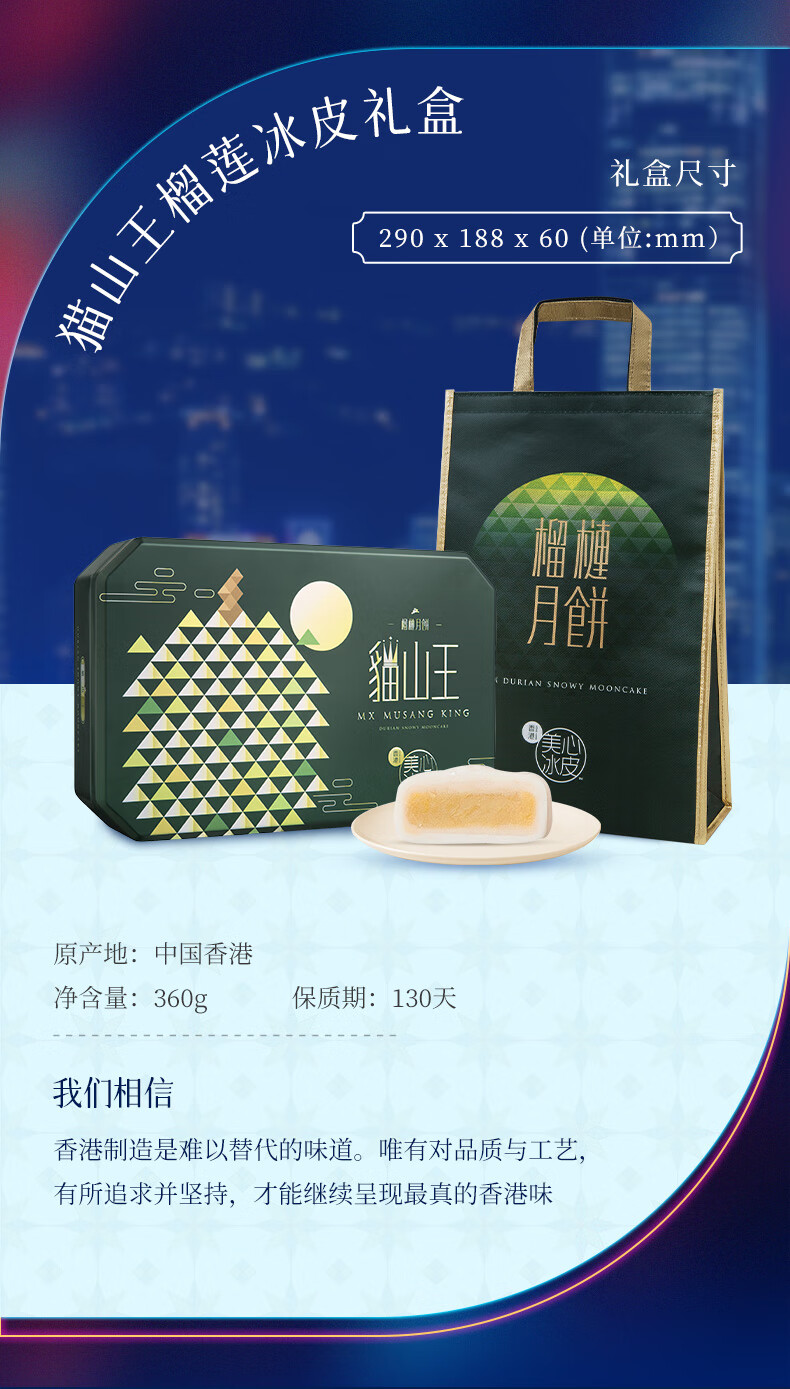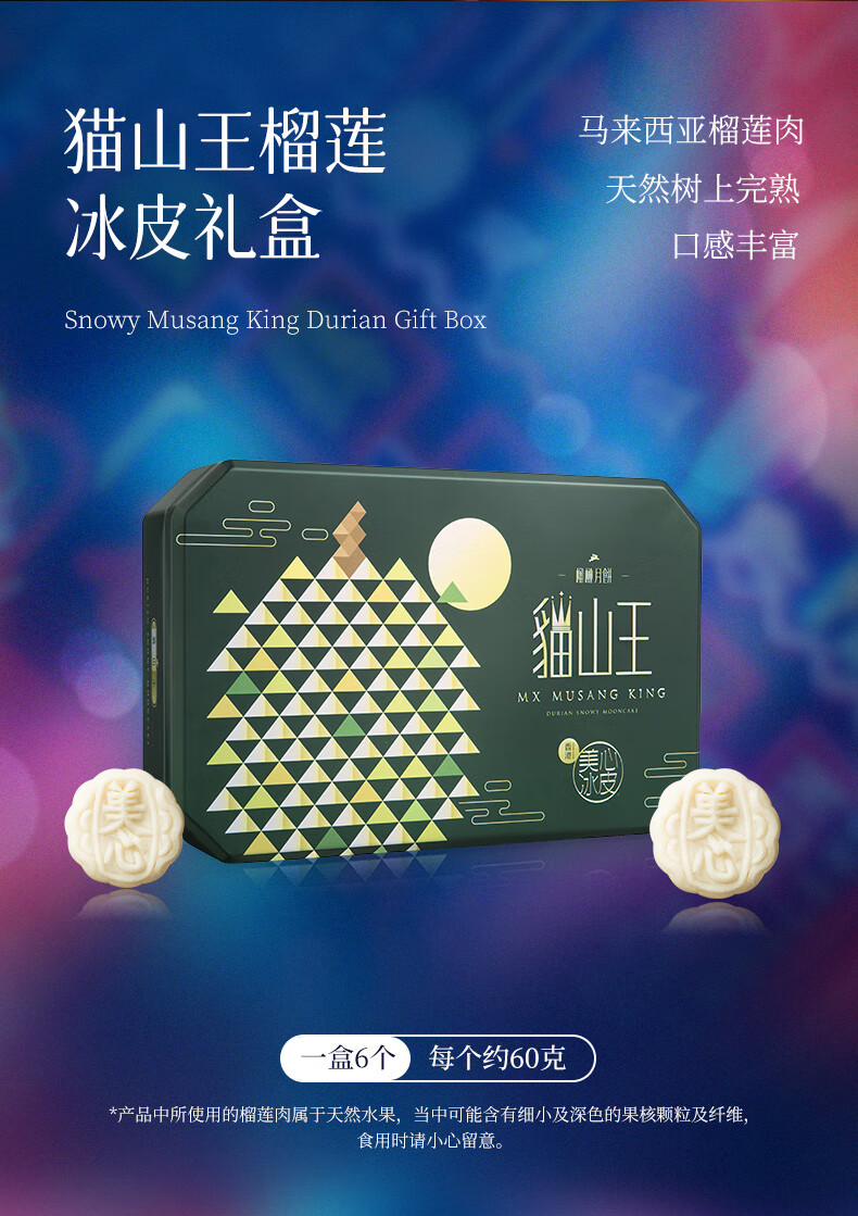 美心 冰皮猫山王榴莲月饼礼盒 360g 1盒