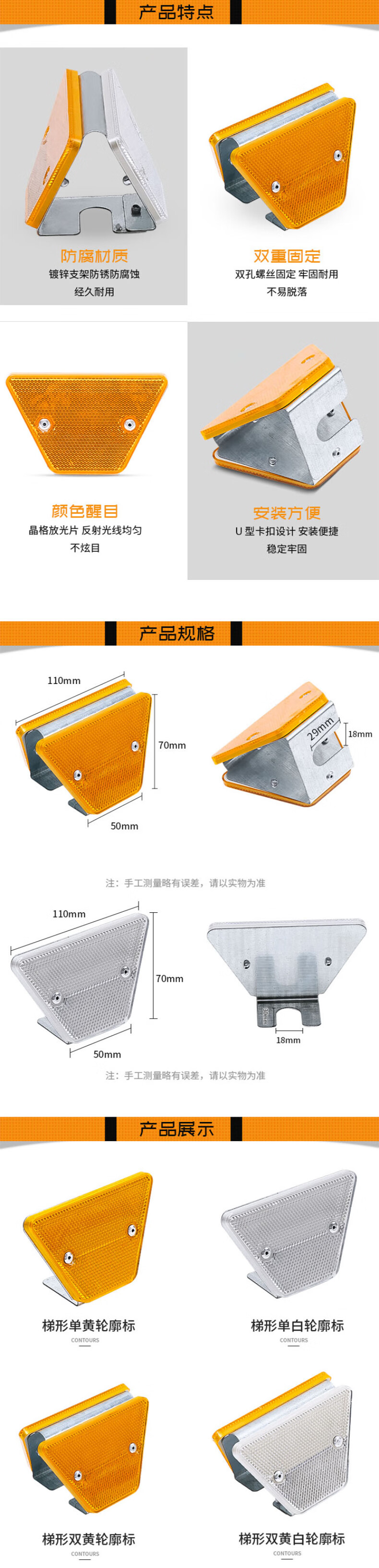 海斯迪克 轮廓标 KA8-9 塑料 梯形 双面黄白 1个