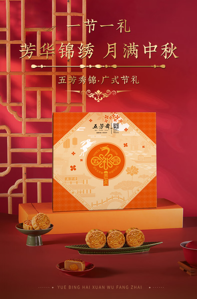 五芳斋 秀锦广式月饼礼盒 580g 1盒