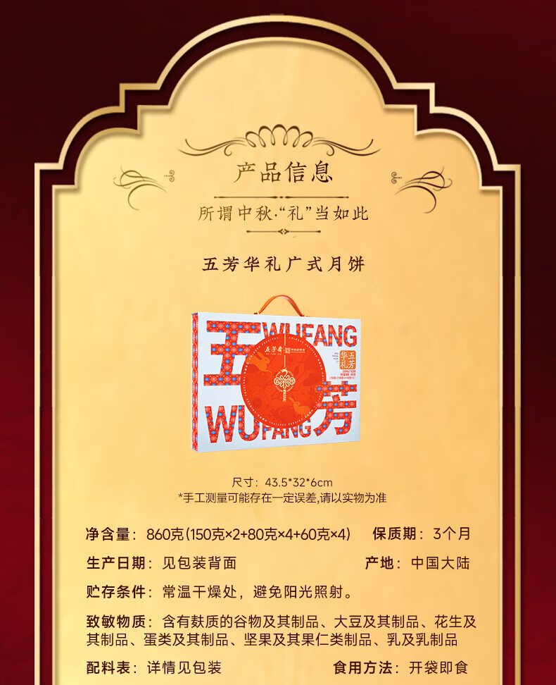 五芳斋 华礼广式月饼礼盒 860g 1盒
