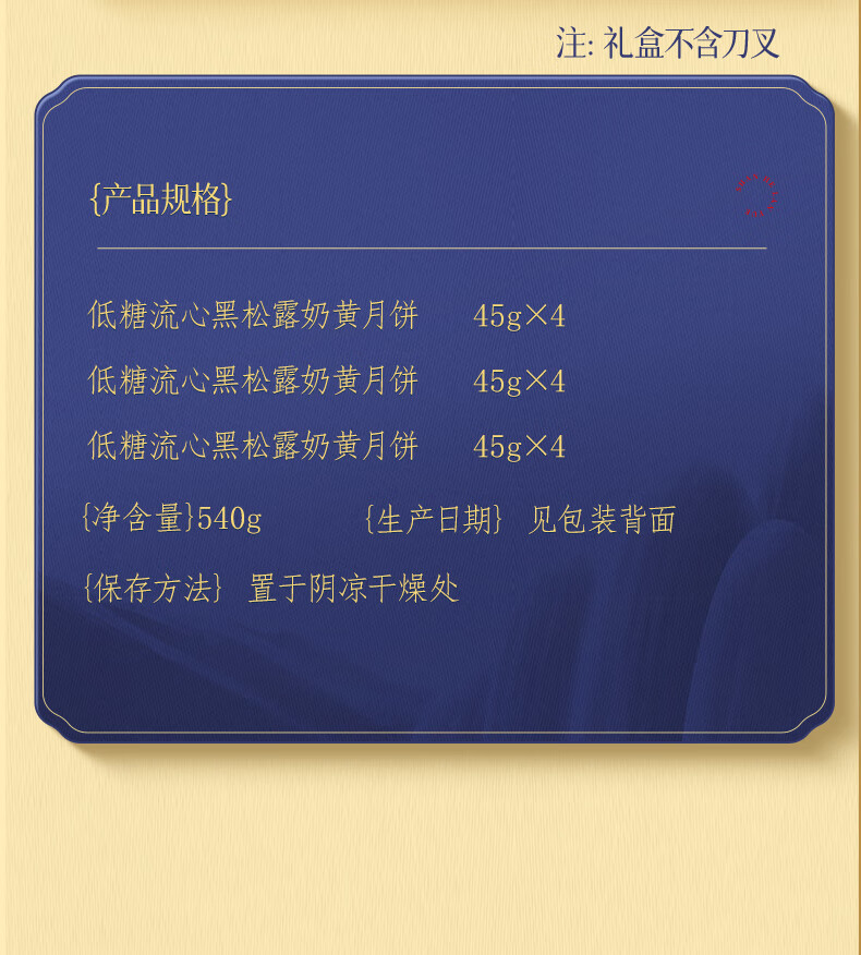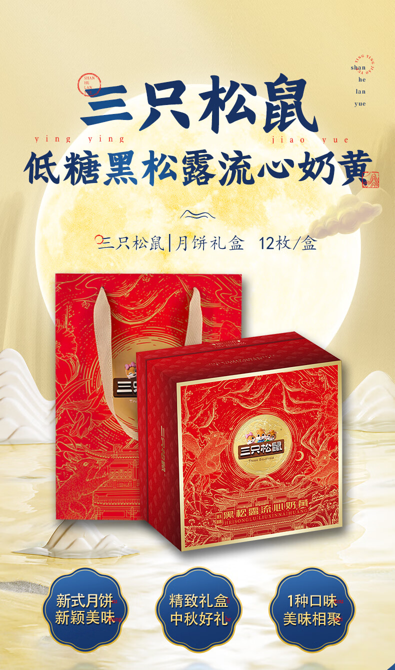 三只松鼠 低糖黑松露流心奶黄月饼礼盒 540g 1盒