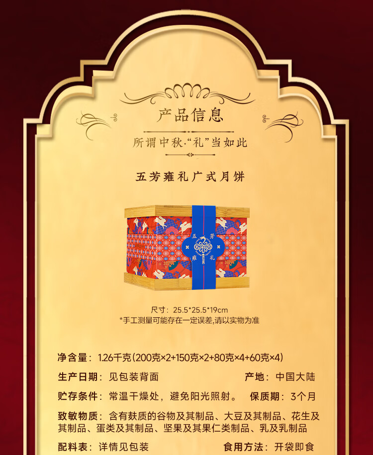 五芳斋 雍礼广式月饼礼盒 1160g 1盒