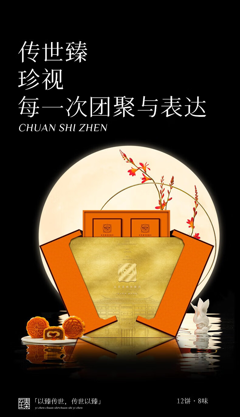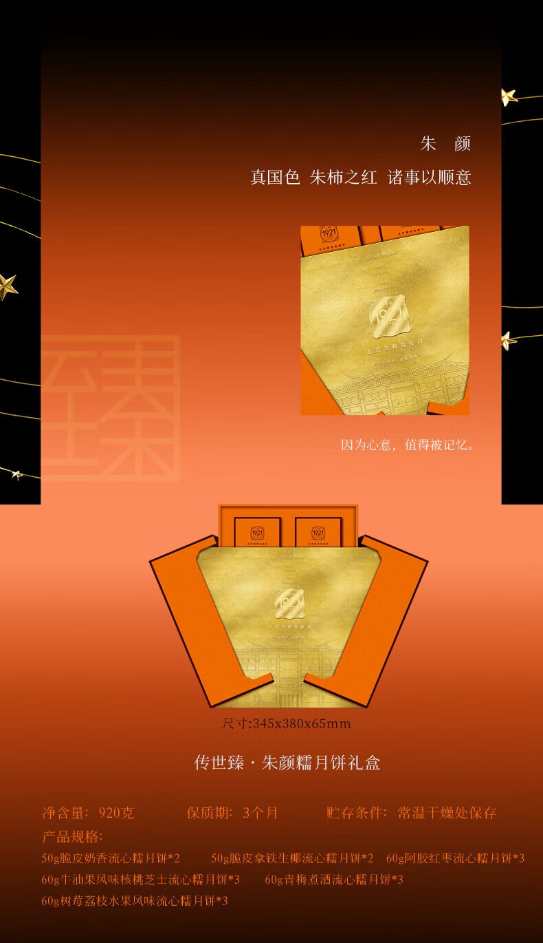 五芳斋 传世臻朱颜糯月饼礼盒 920g 1盒