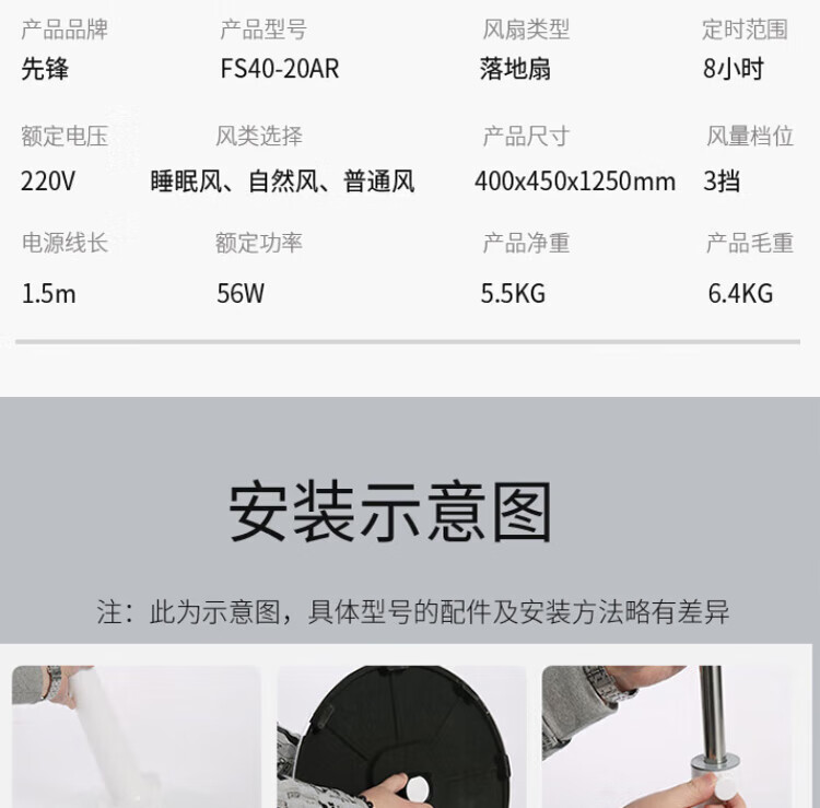 先锋 落地扇 FS40-20AR 56W 220V 1台