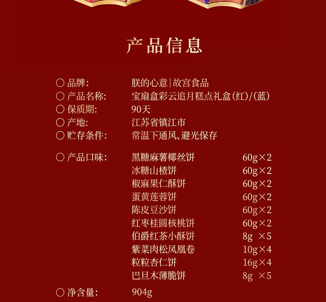故宫食品 朕的心意月饼礼盒 宝扇盒-彩云追月(红) 880g 1盒