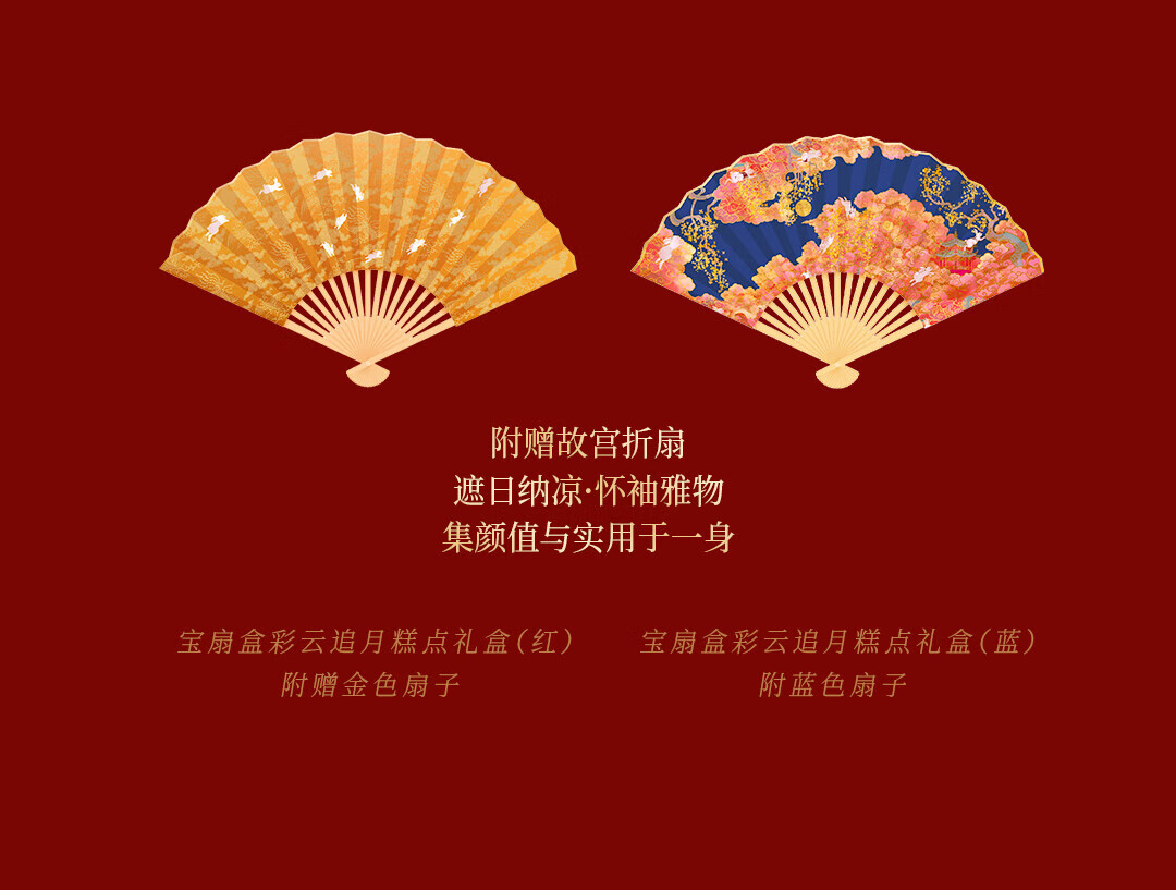 故宫食品 朕的心意月饼礼盒 宝扇盒-彩云追月(蓝) 880g 1盒