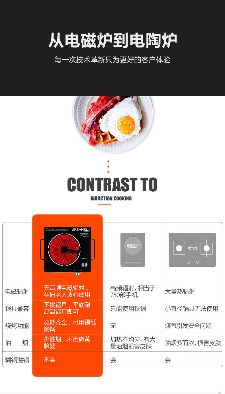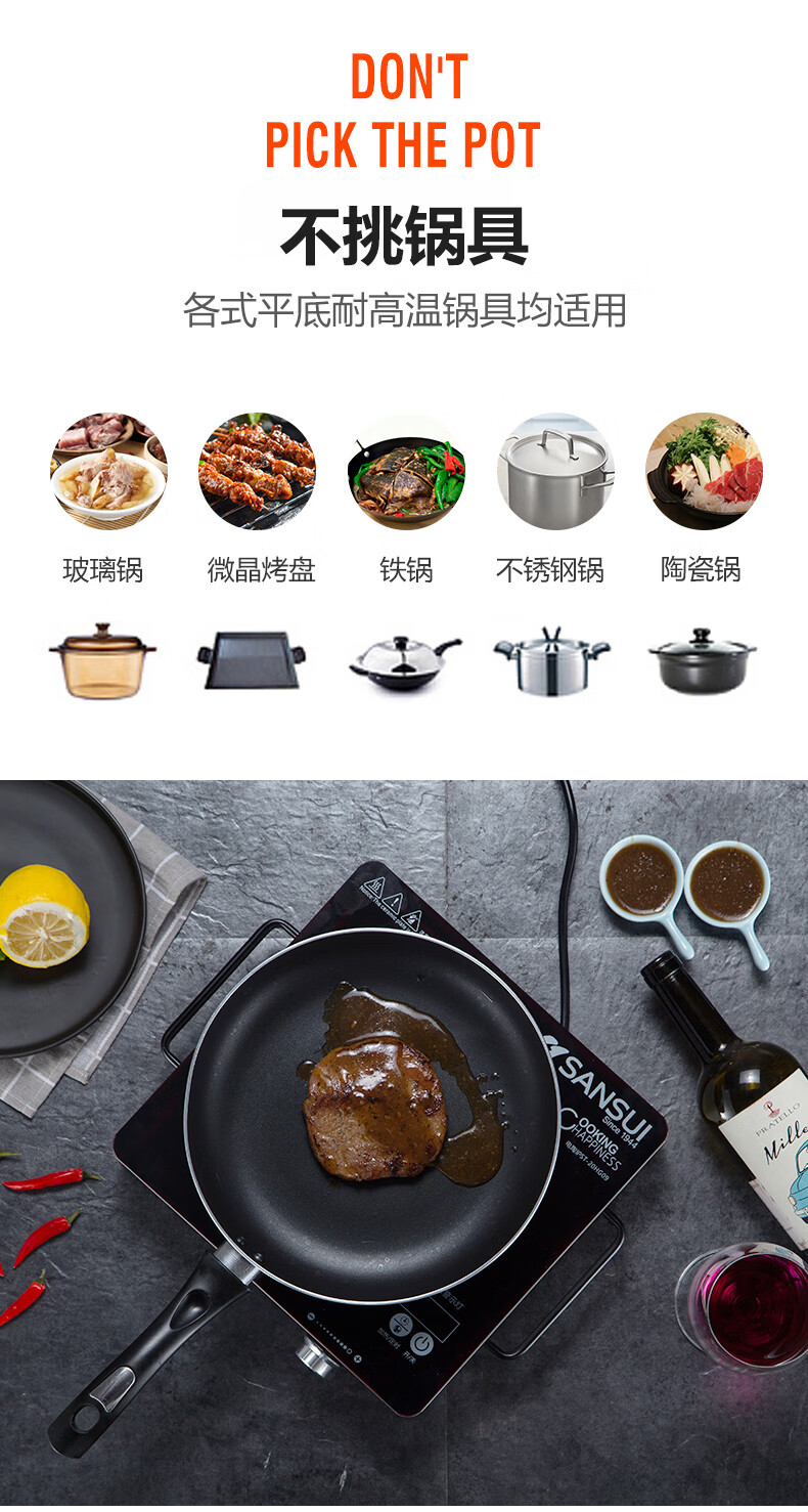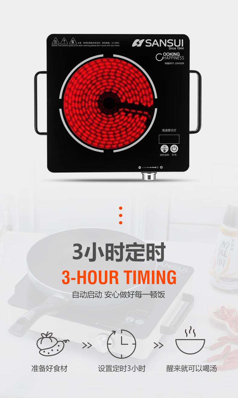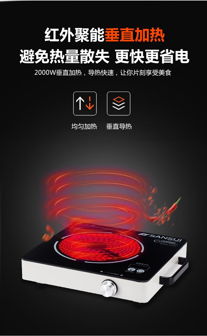 山水 电陶炉 ST-20HG09 黑色 35x28x6.5cm 1个