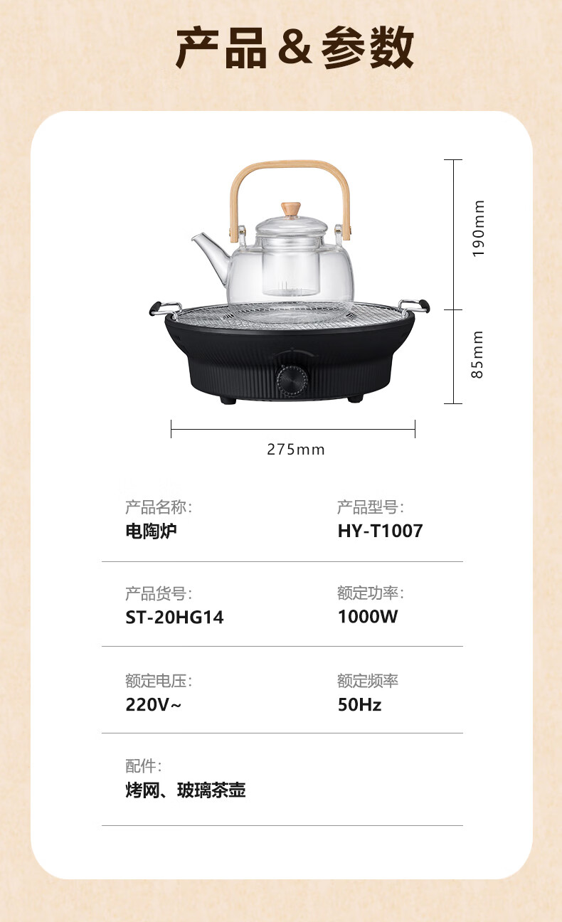 山水 围炉煮茶电陶炉 ST-20HG14 古雅型 1000W 1个