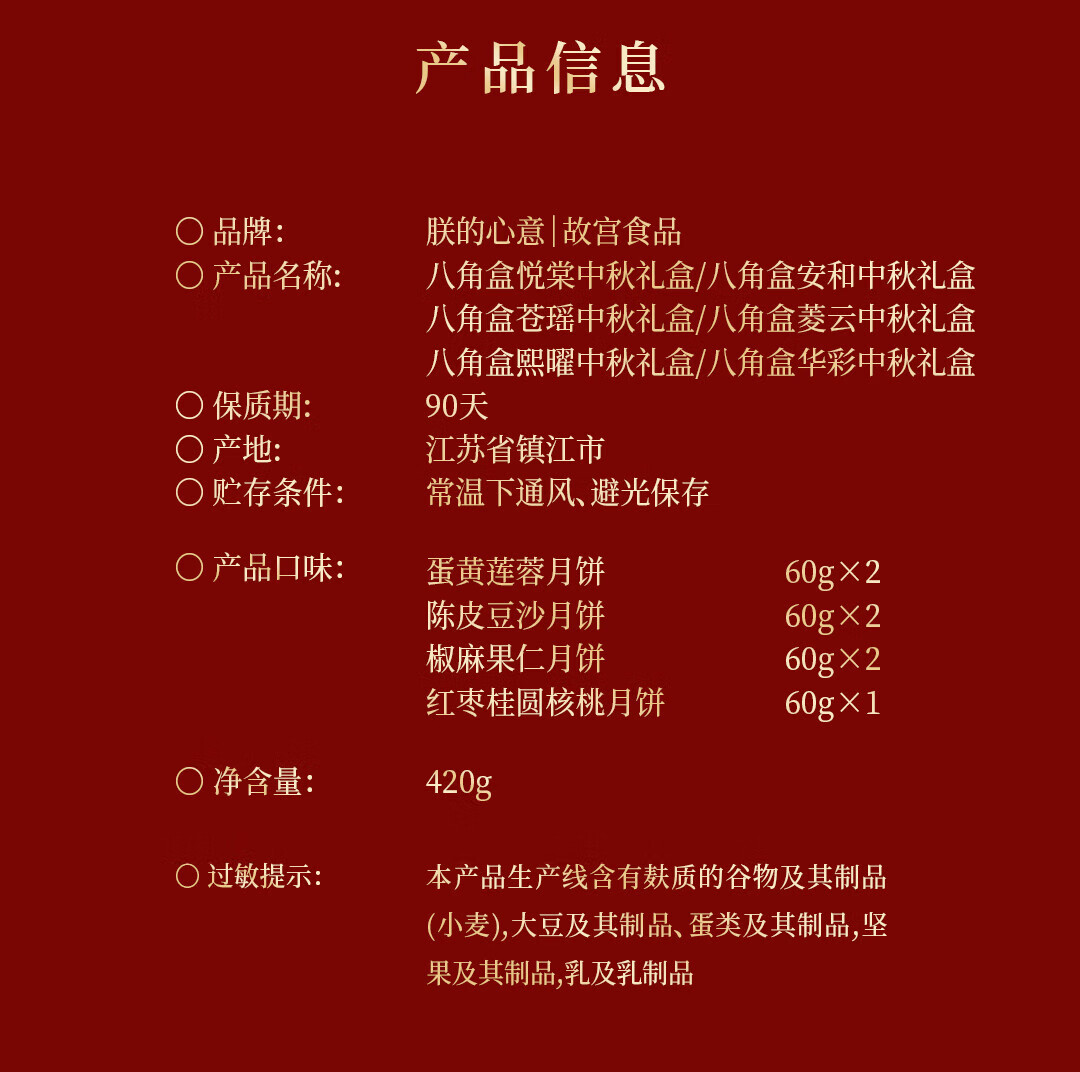 故宫食品 朕的心意月饼礼盒 八角盒-苍瑶 420g 1盒