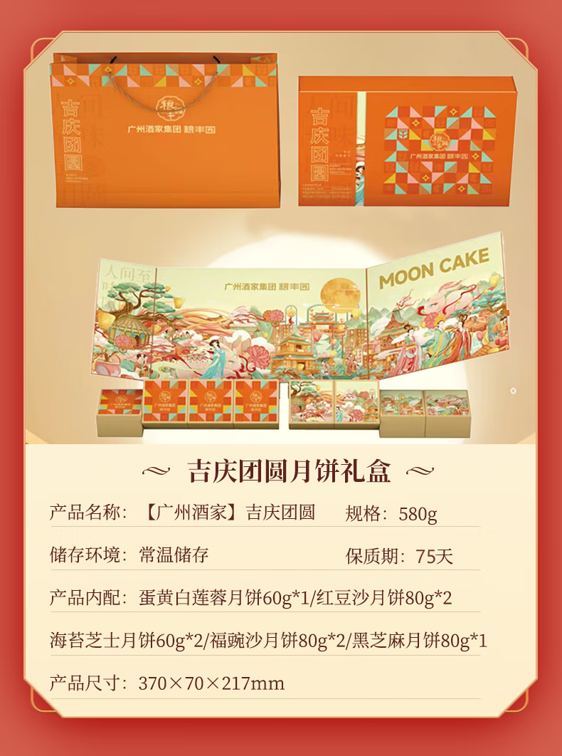 广州酒家 吉庆团圆月饼礼盒 640g 1盒