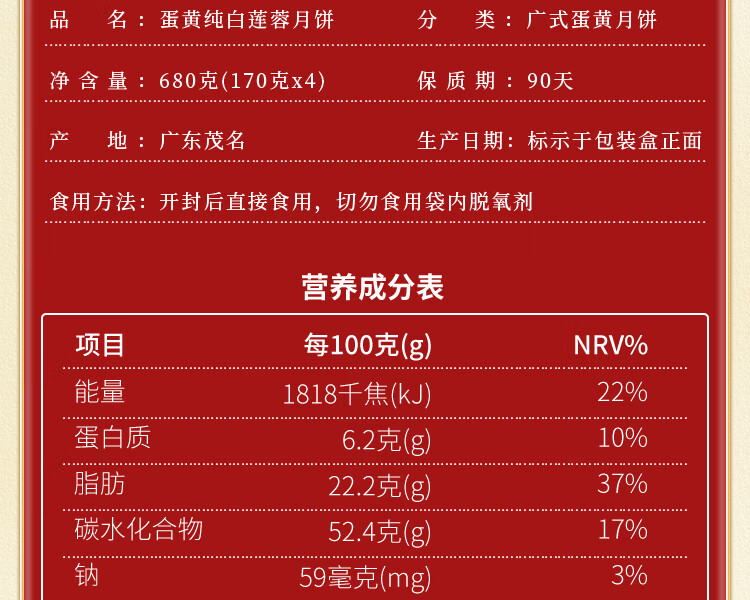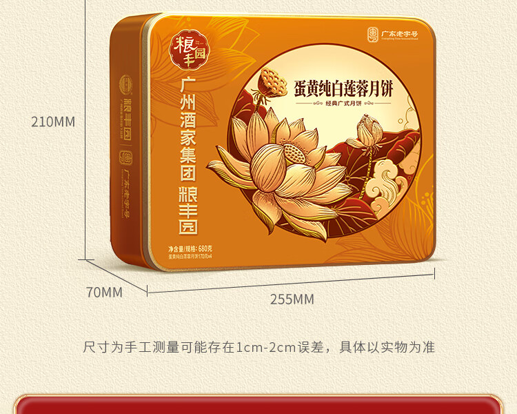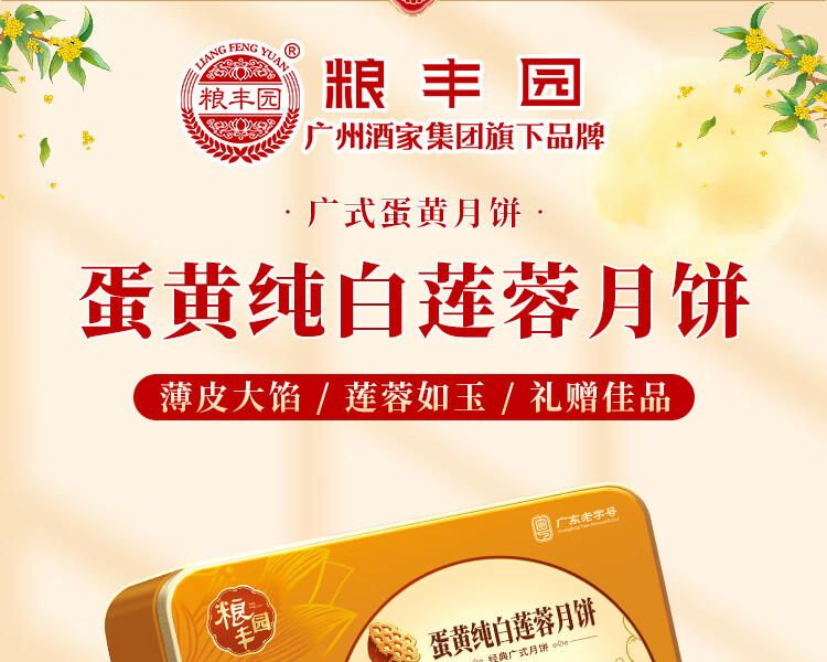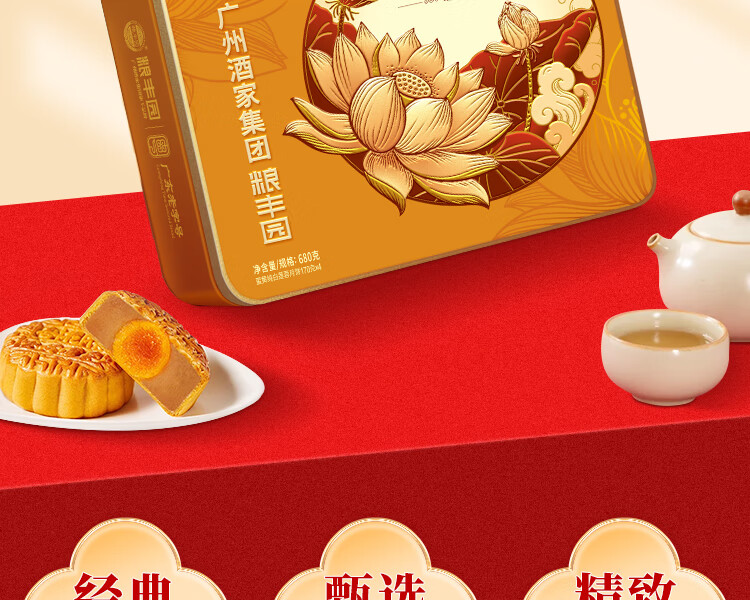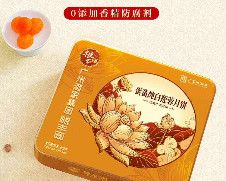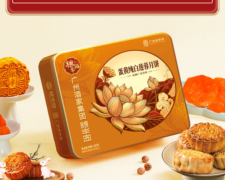 广州酒家 蛋黄纯莲蓉月饼 170g*4个 1盒