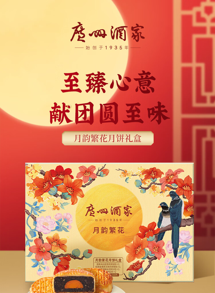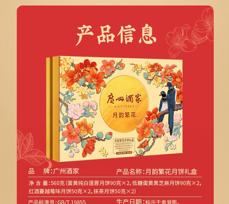广州酒家 月韵繁花月饼礼盒 560g 1盒