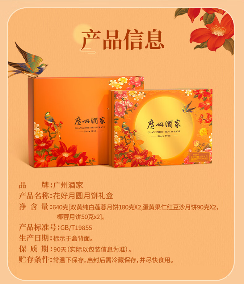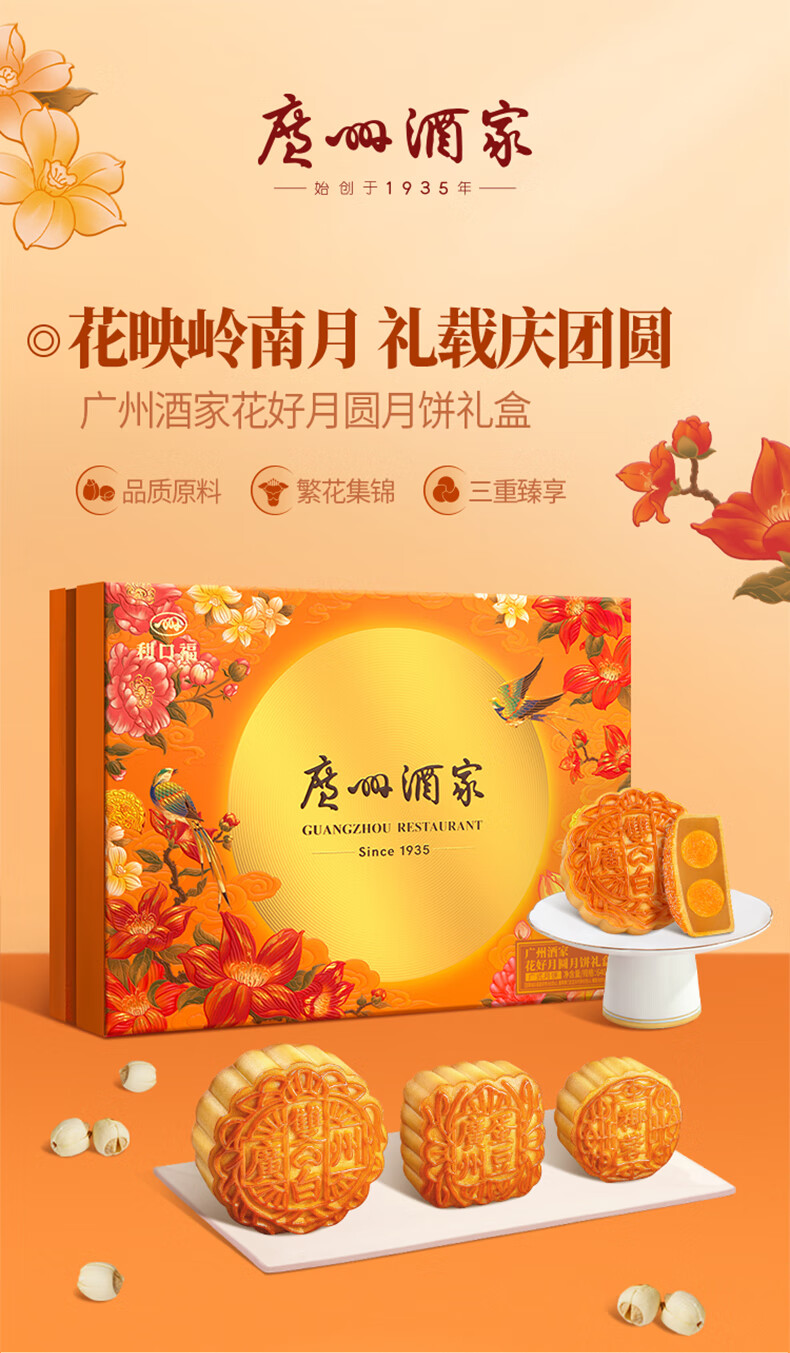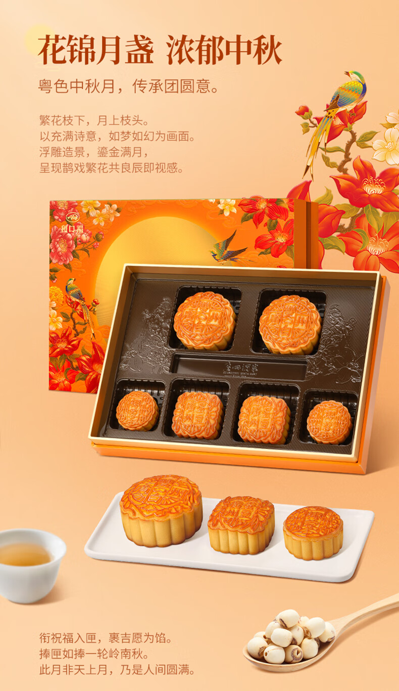 广州酒家 花好月圆月饼礼盒 640g 1盒