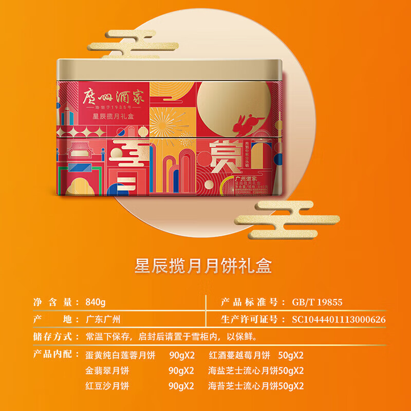 广州酒家 星辰揽月月饼礼盒 840g 1盒