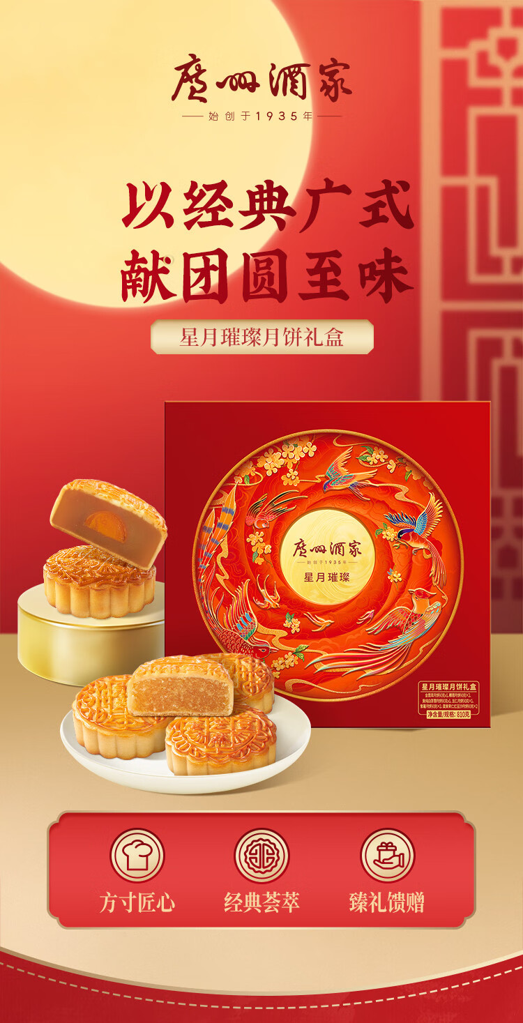 广州酒家 星月璀璨月饼礼盒 810g 1盒