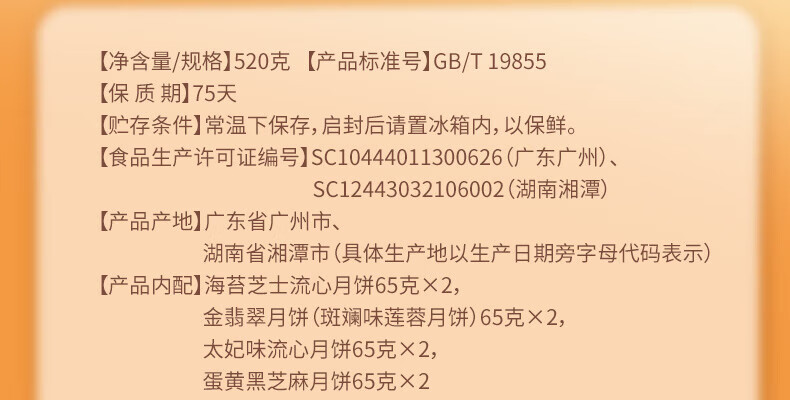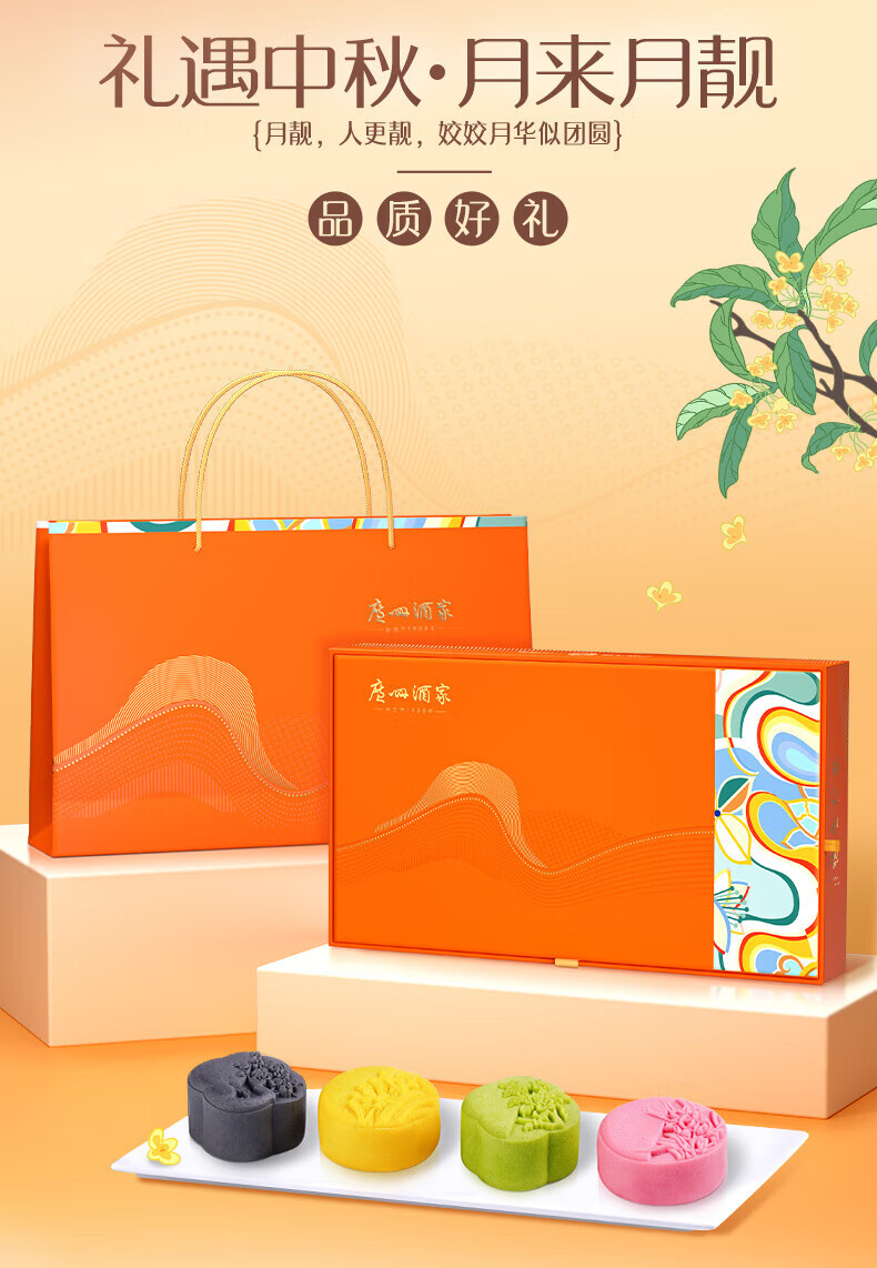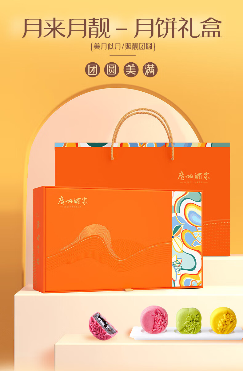 广州酒家 月来月靓月饼礼盒 520g 1盒