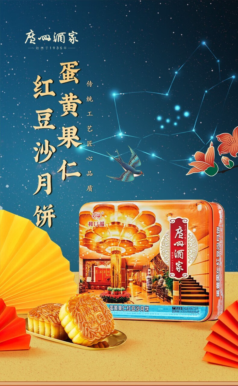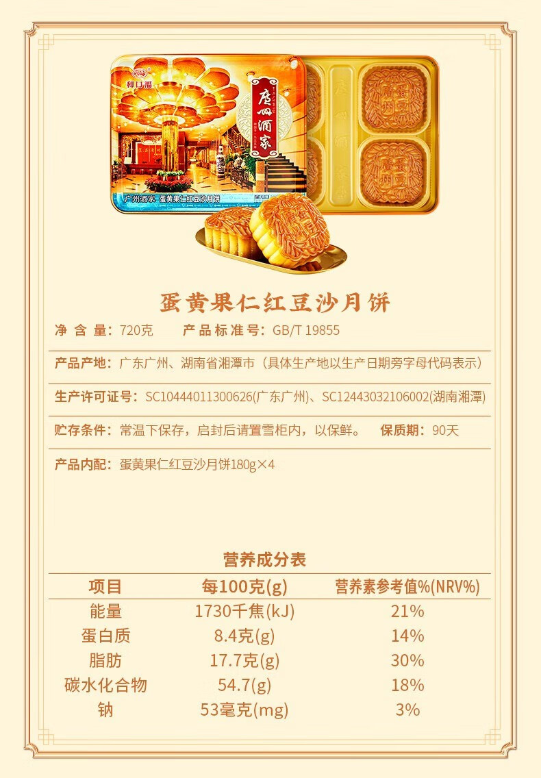 广州酒家 蛋黄果仁红豆沙月饼 720g 1盒