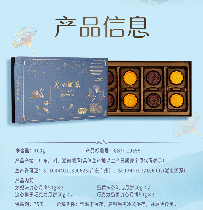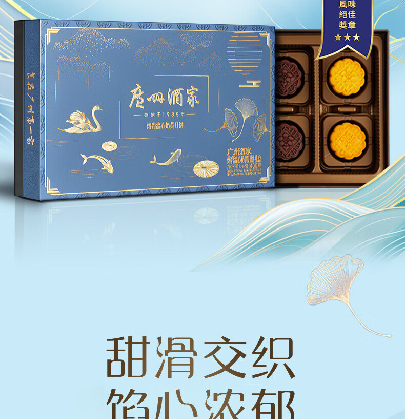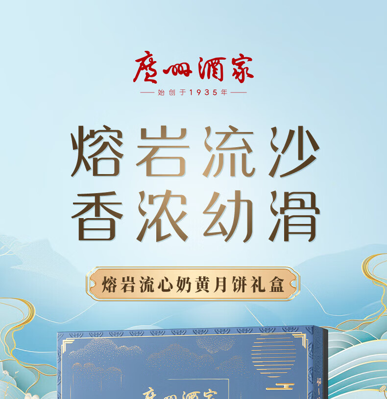 广州酒家 熔岩流心奶黄月饼 400g 1盒