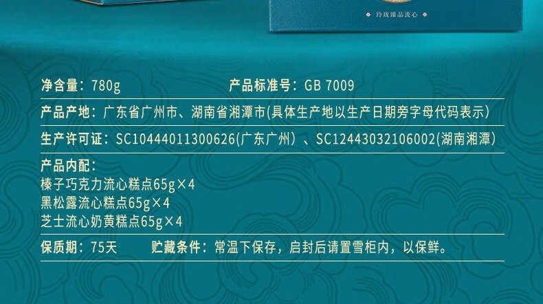 广州酒家 玲珑臻品流心糕点 780g 1盒