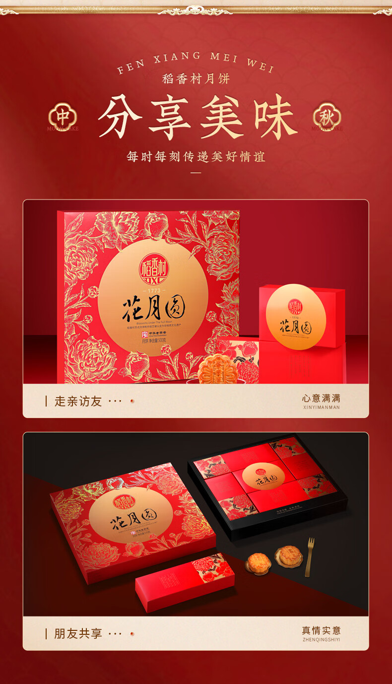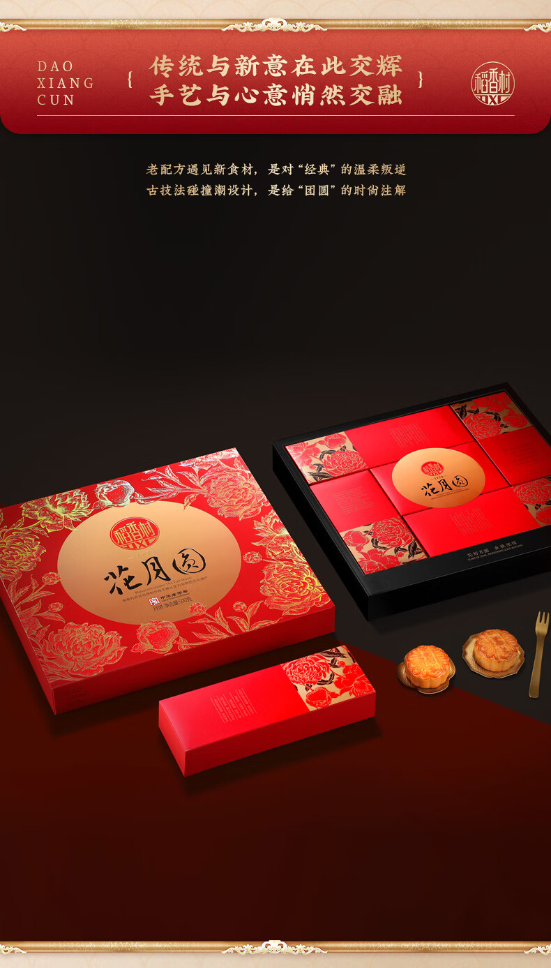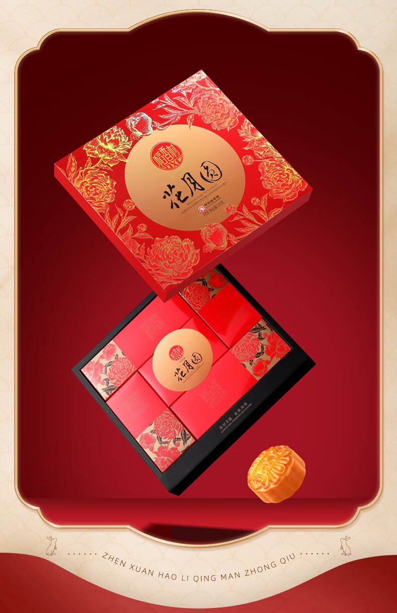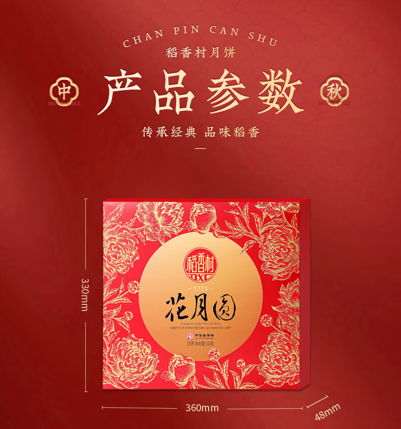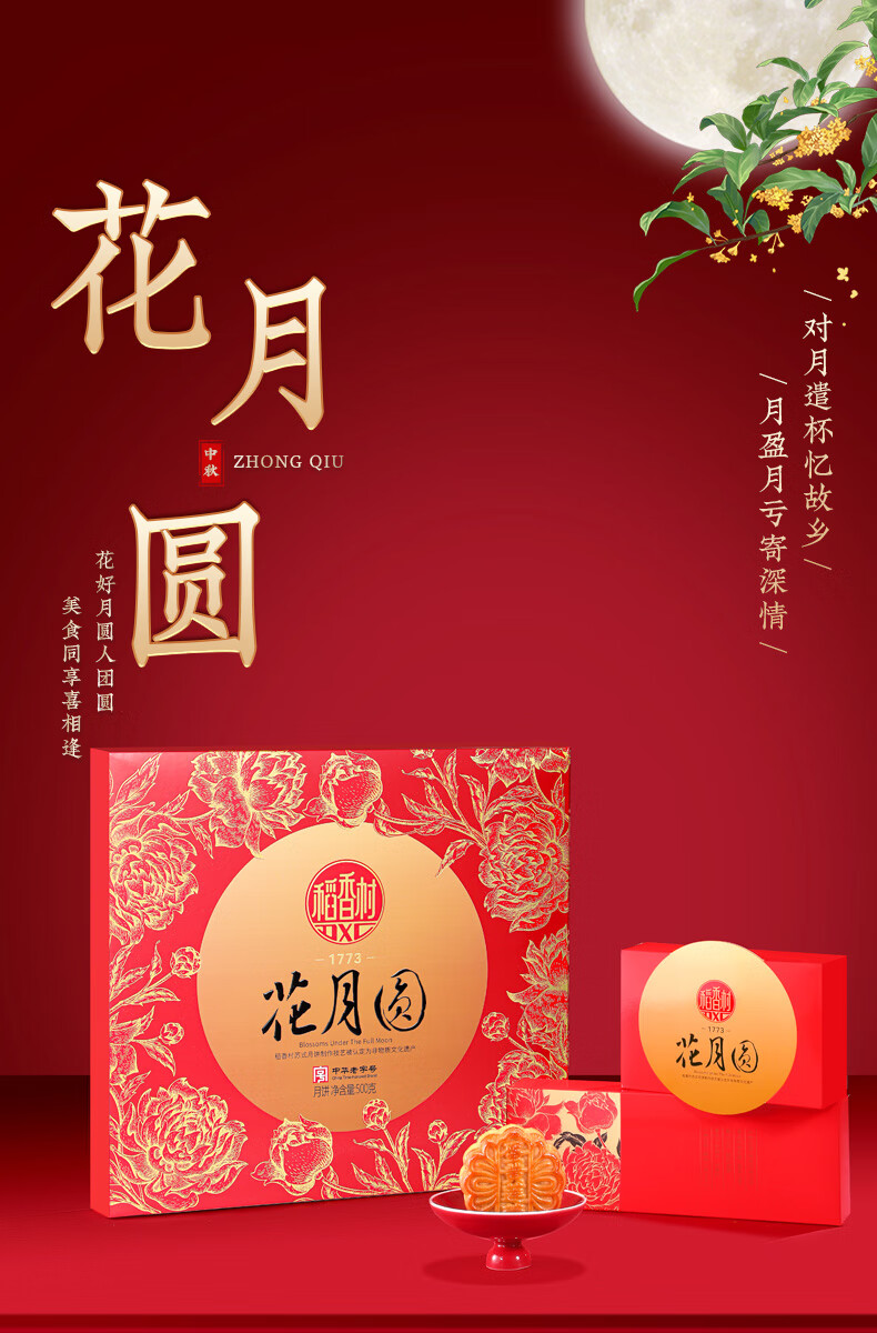 稻香村 花月圆月饼礼盒 500g 1盒