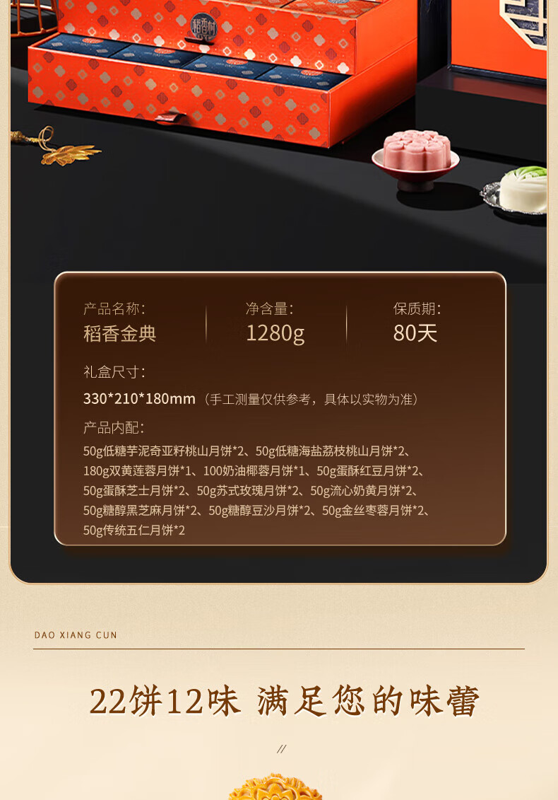 稻香村 稻香金典月饼礼盒 1.28kg 1盒